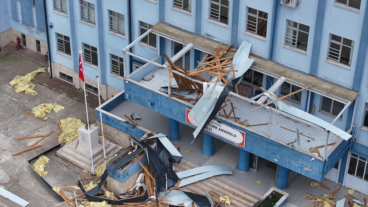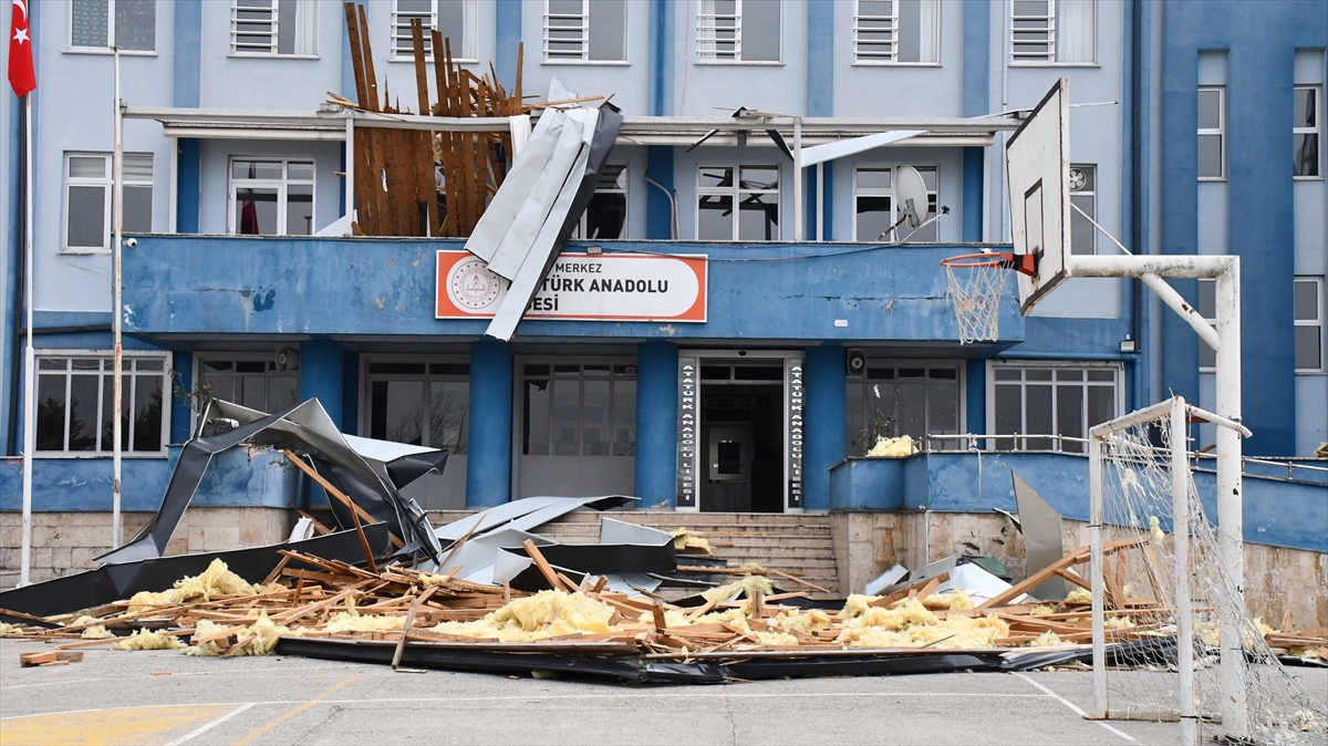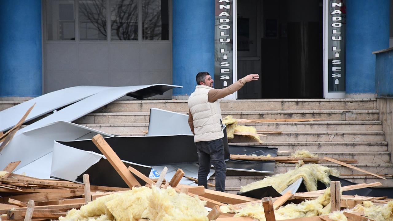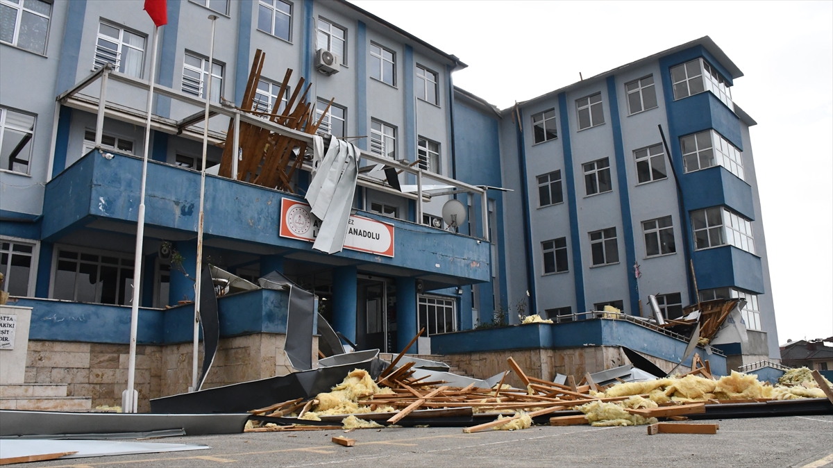 Kalıcı Konutlar bölgesindeki lisenin çatısının bir kısmı, dün etkili olan şiddetli rüzgarda okulun bahçesine savrulmuş, bölgeye gelerek incelemelerde bulunan İl Milli Eğitim Müdürü Gülşen Özer, okulda eğitime 1 gün süreyle ara verildiğini açıklamıştı.