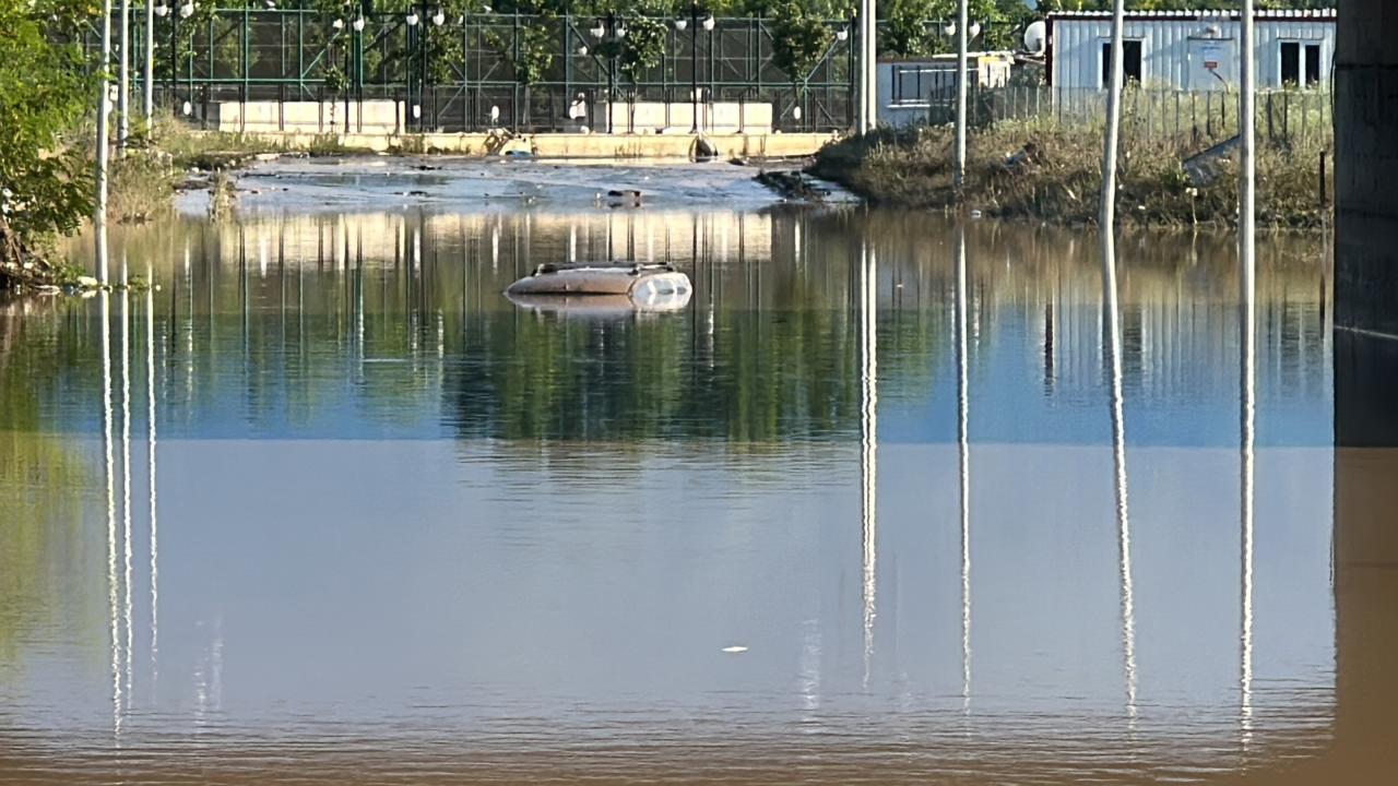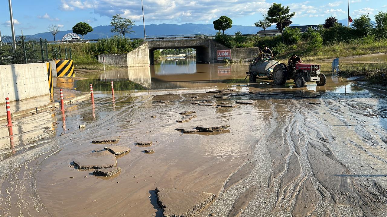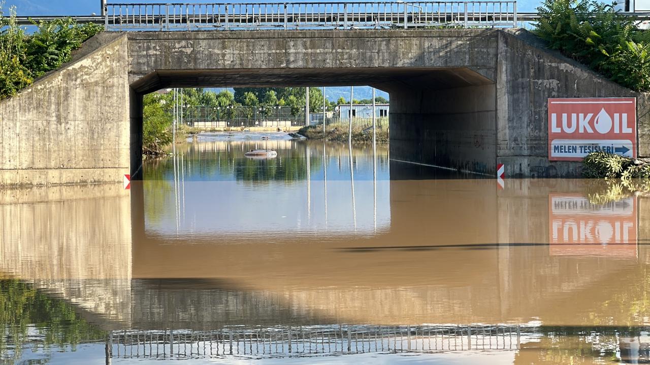 Melen Çayı`nın taşması ile birlikte küçük sanayi sitesinde bulunan alt geçit su altında kaldı.