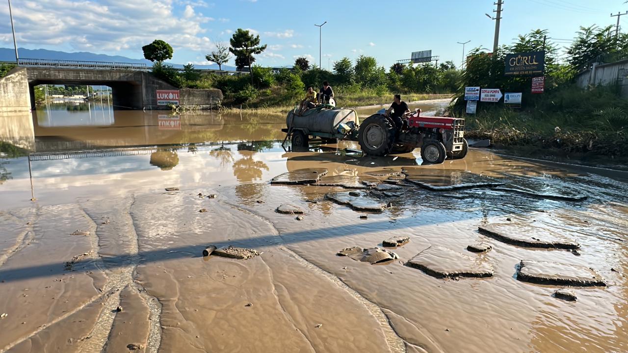 Düzce‘de sağanak yağışın etkili olduğunu ve bir çok bölgede su taşkınların meydana geldiğini belirten Hakan Arslan, “Cumartesi ve pazar günleri Düzce‘de çok etkili bir sağanak yağış oldu. Dereden taşan sular burada asfaltı yerinden kaldırıp köprünün altına kadar almış. Asfaltı yerinden sökmüş. Köprünün altında da bir araç var. Su çekilince neler çıkacak belli değil” ifadelerini kullandı.