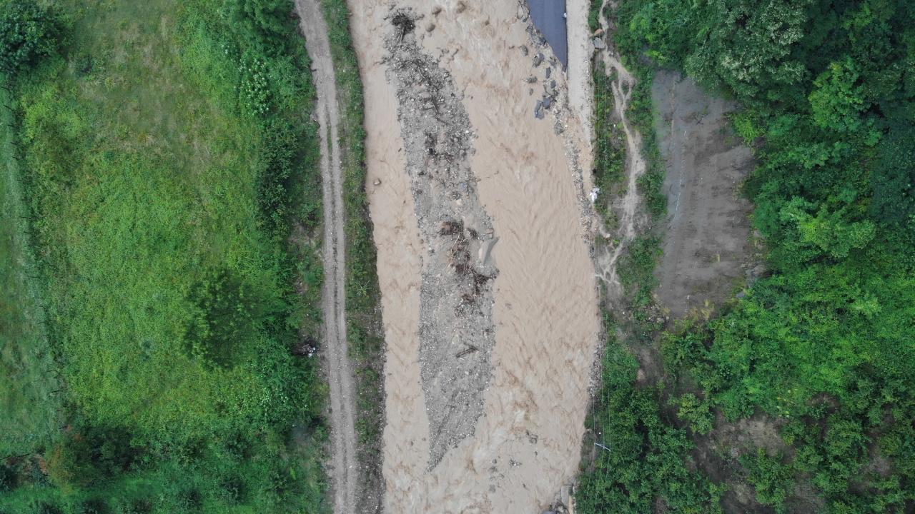Bazı derelerin taşması sonucu iki köye ulaşım sağlayan yolda göçük oluştu, ekipler köylerde mahsur kalanlara ulaşmak için çalışma başlattı.