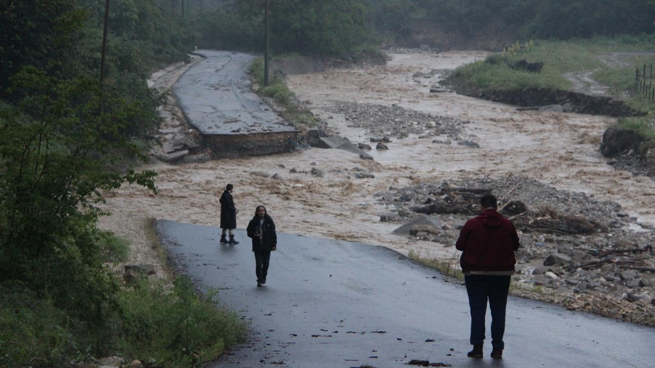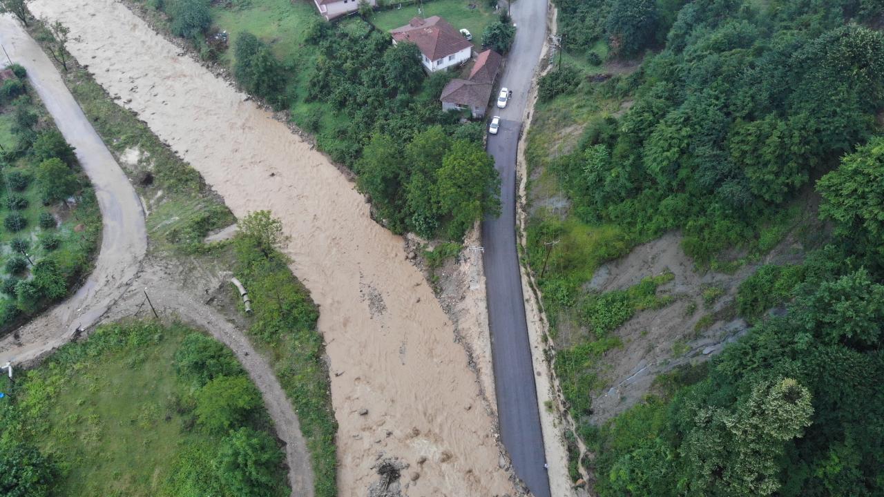 Sağanak nedeniyle Kıran Deresi`nin taşması sonucu Akçakoca ilçesine bağlı Esmahanım ve Uğurlu köylerine ulaşım sağlanan yolda göçük oluştu.