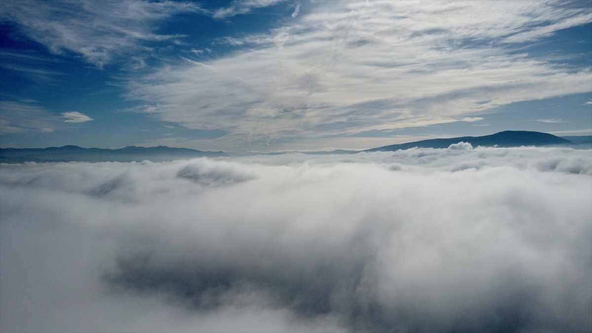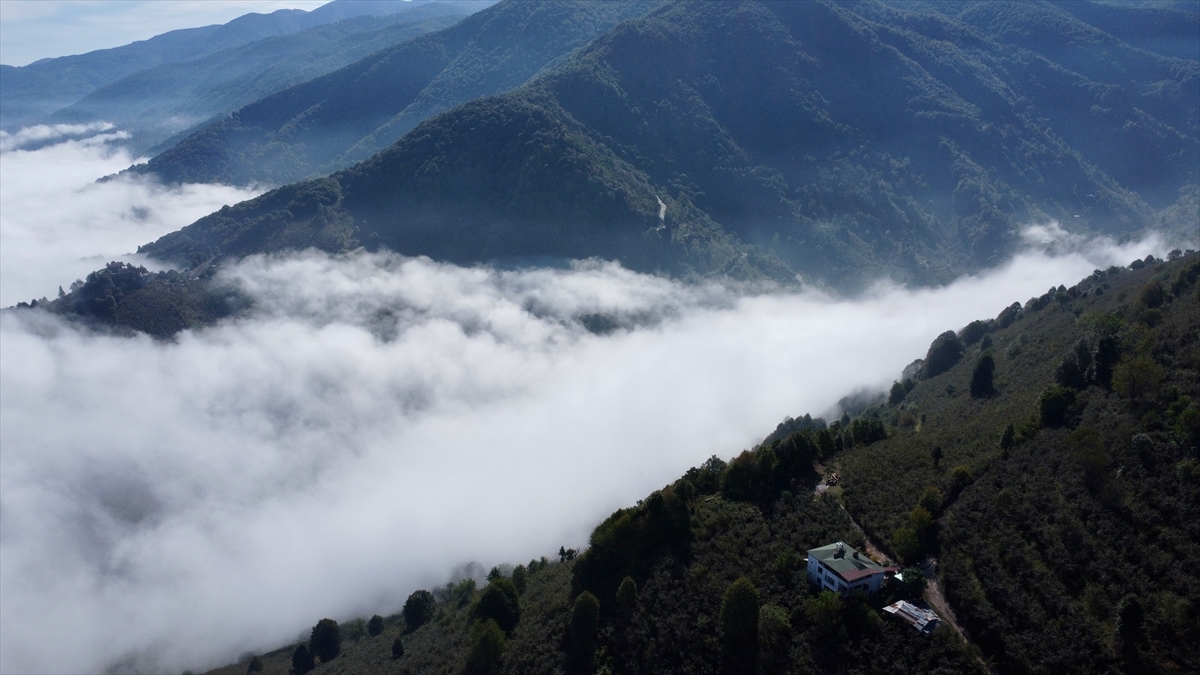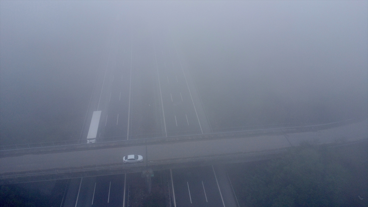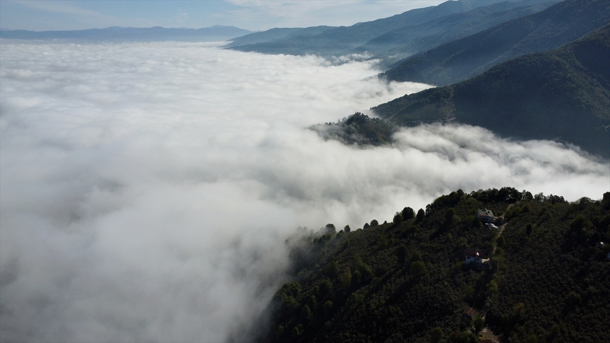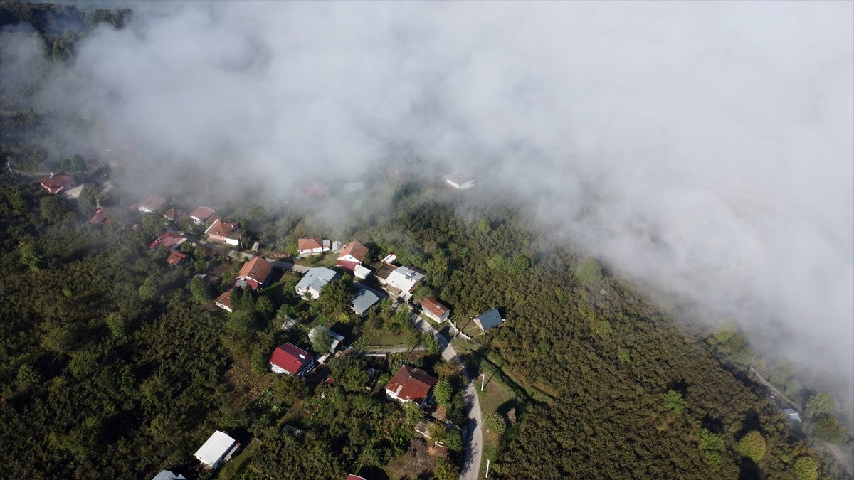 Öte yandan Düzce Ovası`nın üzerini kaplayan sis dronla görüntülendi.