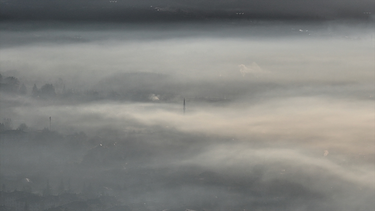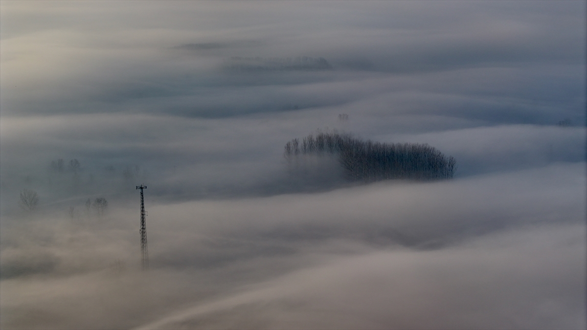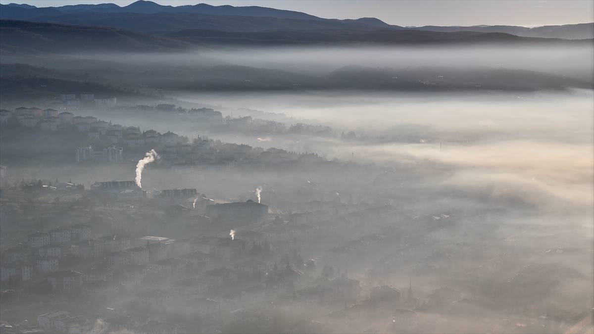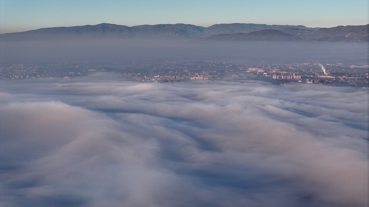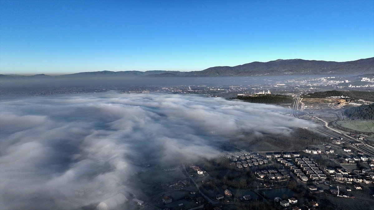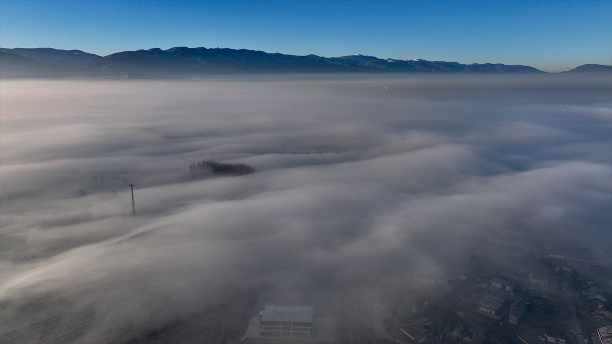 Düzce kent merkezinde gece başlayan sis, sabah saatlerinde yoğunluğunu artırdı. Bölgede oluşan sis bulutu havadan görüntülendi.