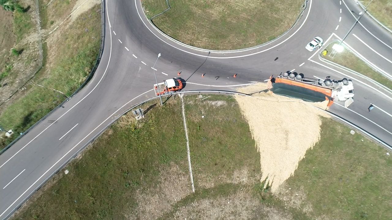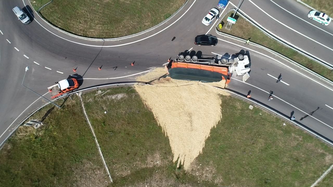 Düzce'de devrilen talaş yüklü tırın şoförü yaralandı.