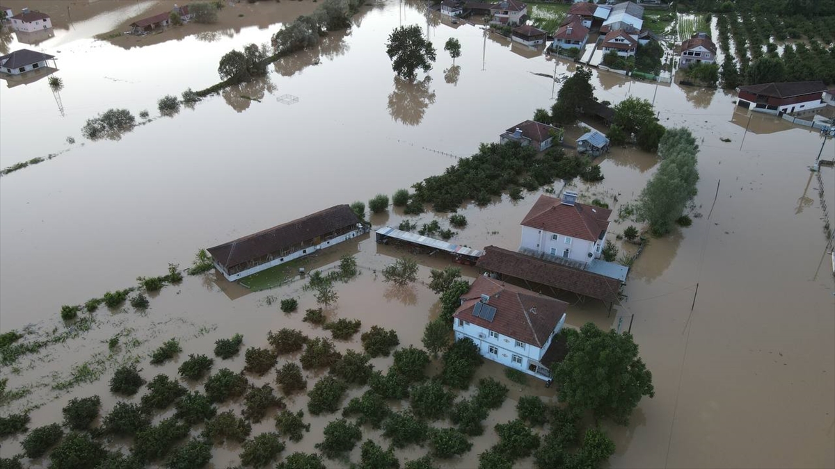 Melen Barajı`nı besleyen çayın da doğuş noktası olan Efteni Gölü havzasında yer alan İçmeler köyü, bölgede etkili olan yağışların ardından yaşanan sel nedeniyle sulara gömüldü.