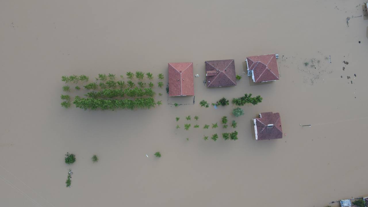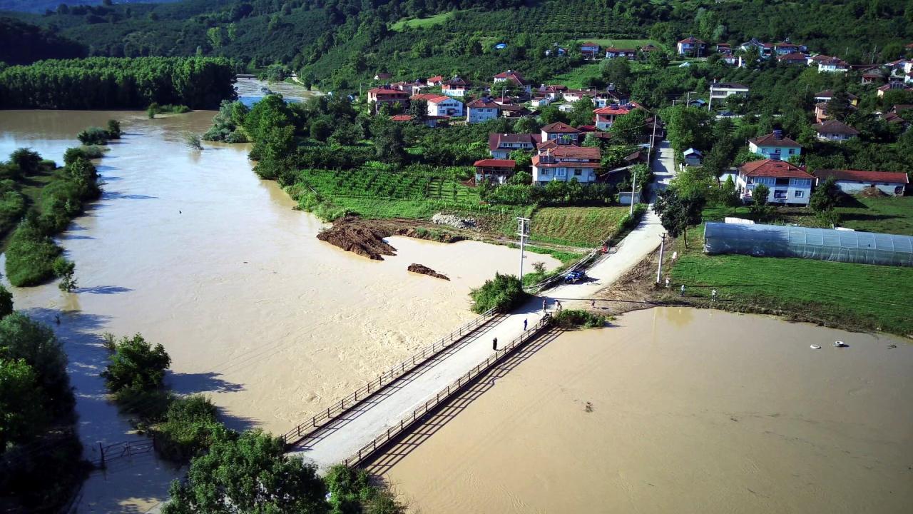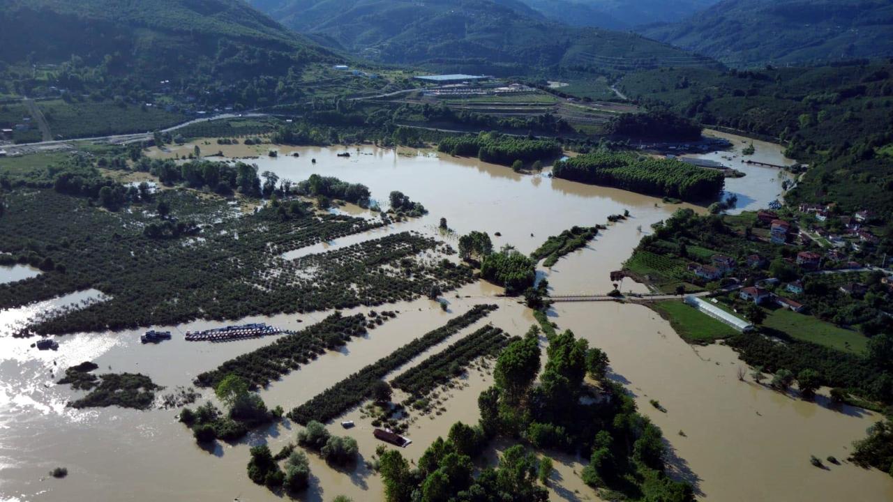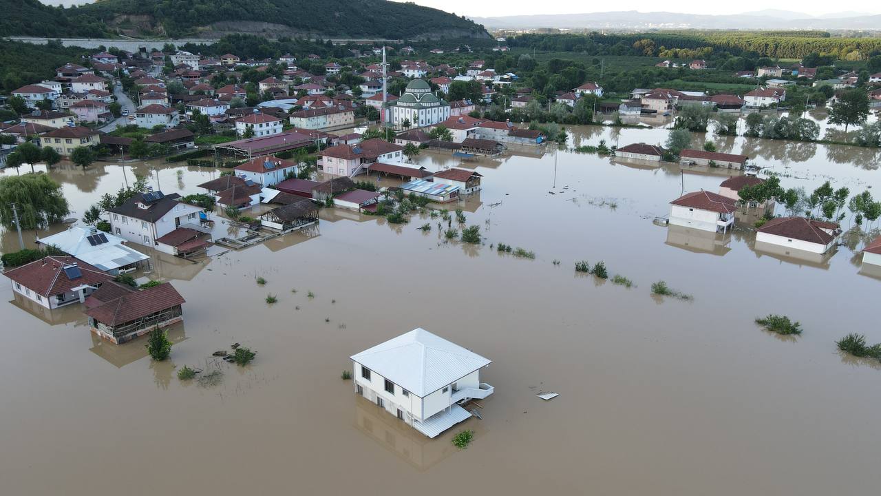 Düzce'de tamamı su altında kalan İçmeler köyü dronla görüntülendi