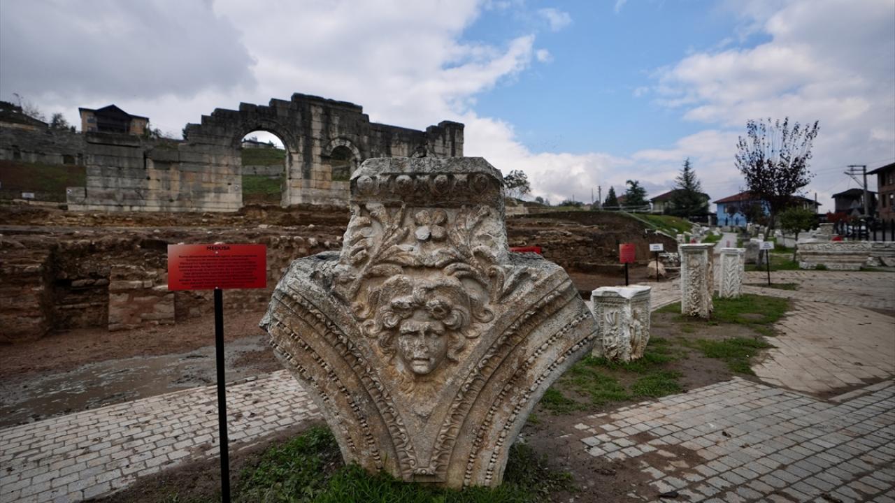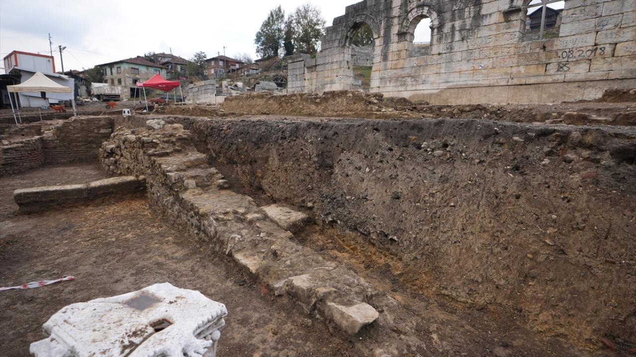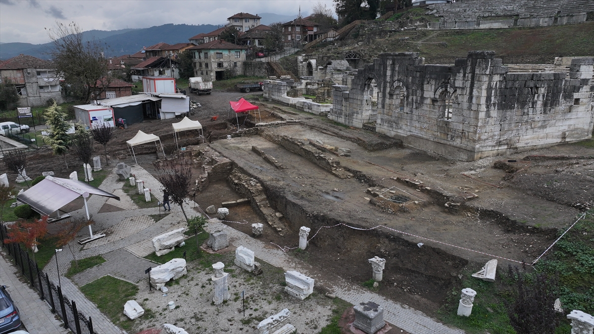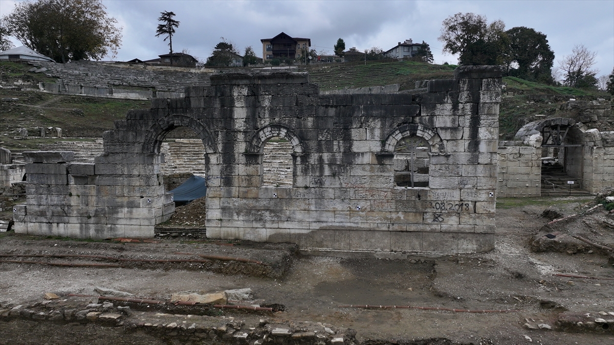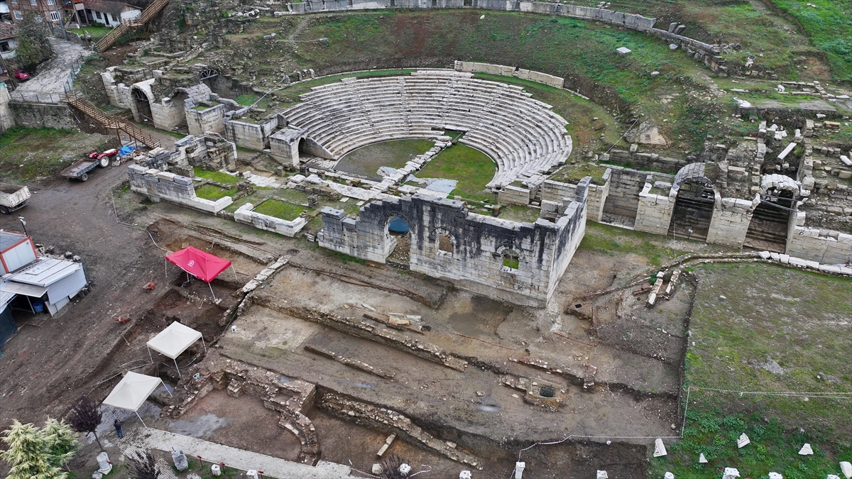 Düzce Belediyesinden yapılan açıklamaya göre, tarihi milattan önce 3. yüzyıla uzanan antik kentte tiyatro bölümünün ön kısmında kazı çalışmaları, Kültür Varlıkları ve Müzeler Genel Müdürlüğünün izni ve Düzce Belediyesinin desteğiyle Konuralp Müze Müdürlüğü başkanlığınca sürdürülüyor.