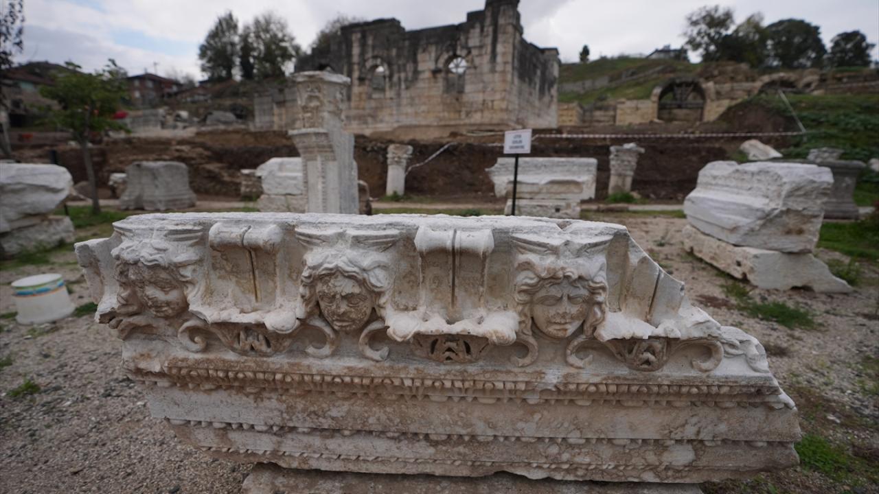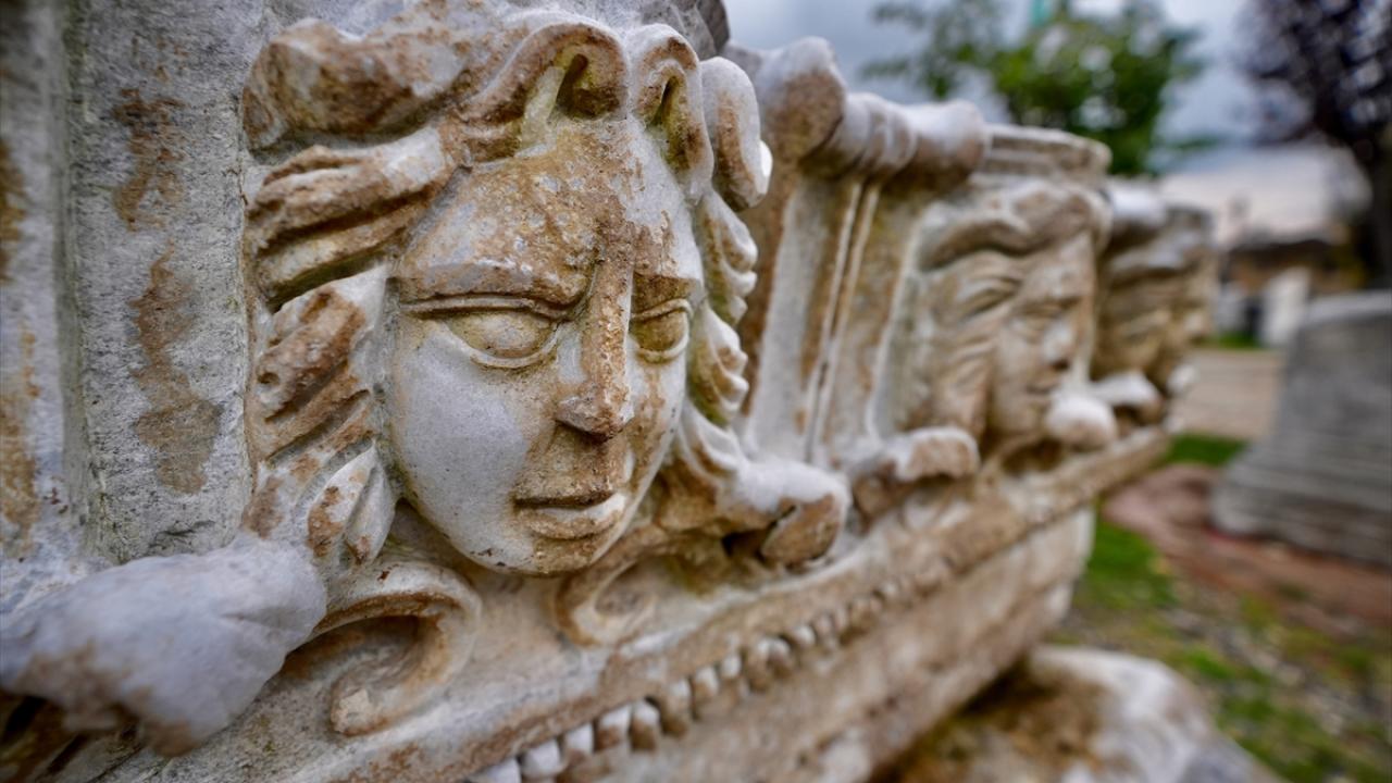 Kazılarda bugüne kadar 2 bin yıllık olduğu değerlendirilen, Yunan mitolojisinde "gözlerine bakanı taşa çeviren, yılan saçlı dişi canavar" olarak bilinen Medusa heykel başı, mask (yüz kalıbı) heykelleri ile grotesk (eski çağ Roma yapılarında bulunan tuhaf, gülünç figürlerden oluşmuş süsleme) figürü ve tonoz (tavan örtüsü) bulundu.