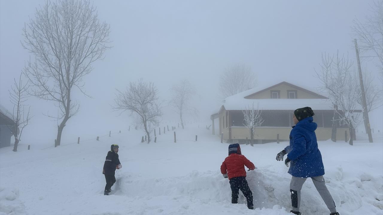 Ormanlık alanıyla her mevsim, fotoğraf tutkunları başta olmak üzere ziyaretçilerin ilgi odağı olan yaylaya aileleriyle gelen çocuklar karın tadını çıkardı.