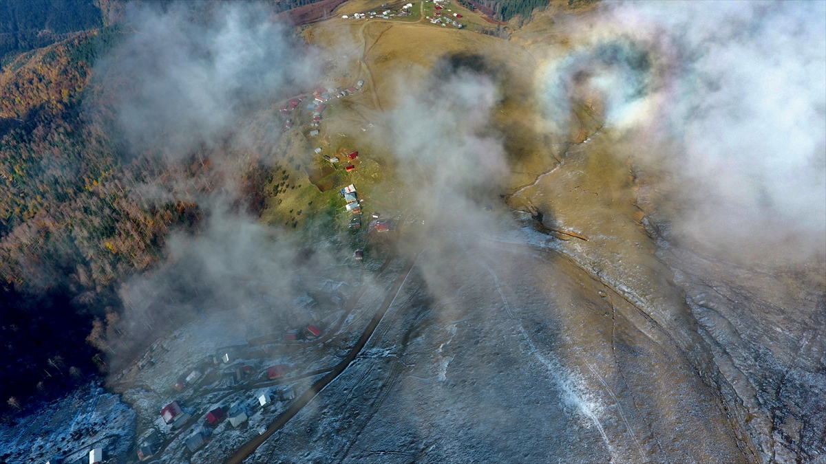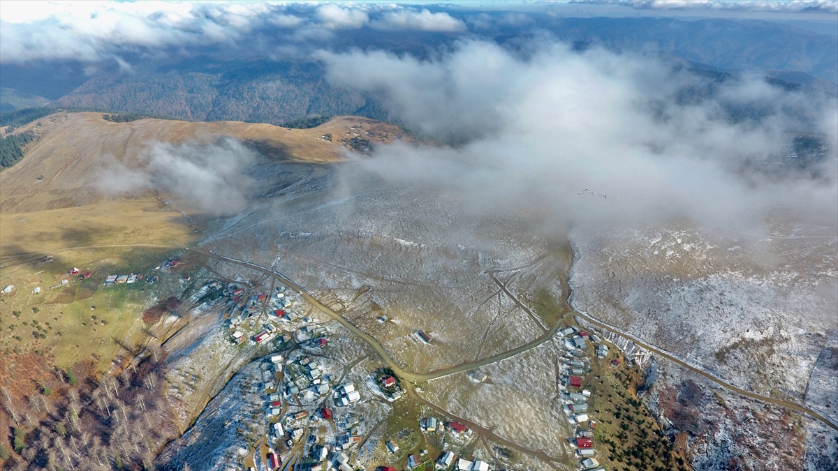 Yaylanın yamaçlarındaki çam ağaçları ve denizde oluşan sis de karla beraber güzel görüntüler oluşturdu.