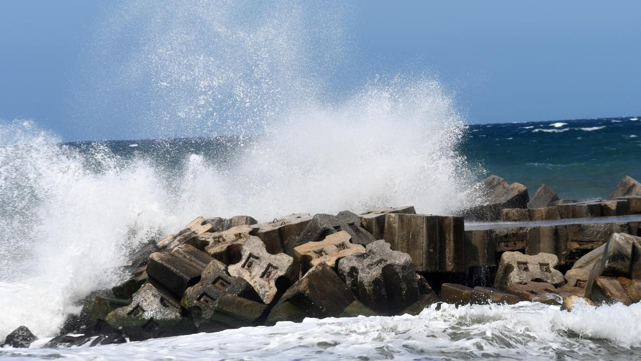Dalgalar, zaman zaman kıyı şeridindeki istinat duvarlarını aştı.