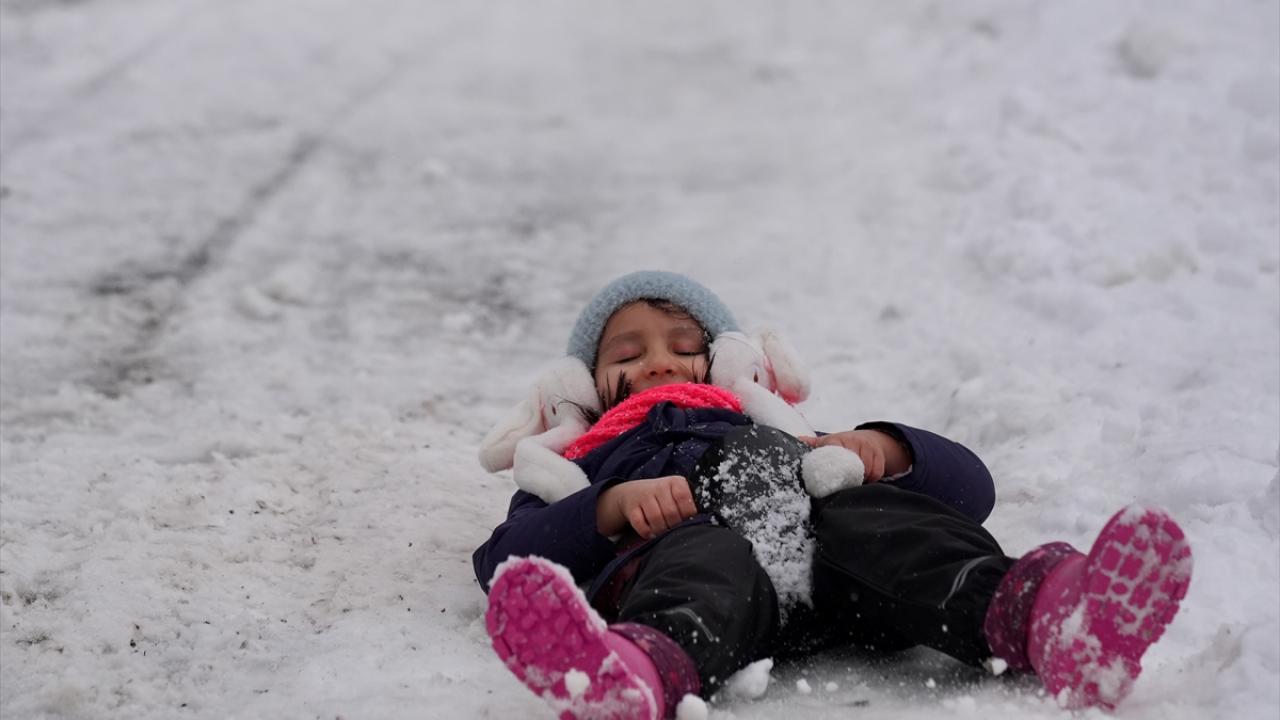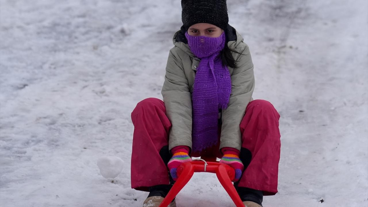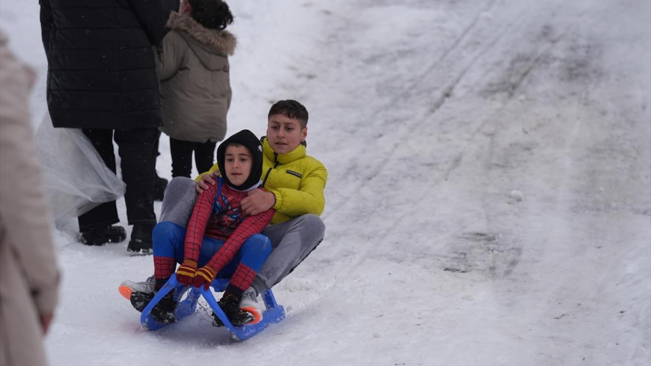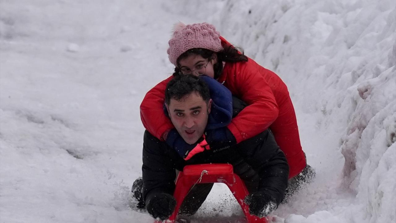 Bölgedeki bungalov evlerde konaklayan aileler, çocuklarıyla karda kayarak ve kar topu oynayarak keyifli vakit geçirdi.