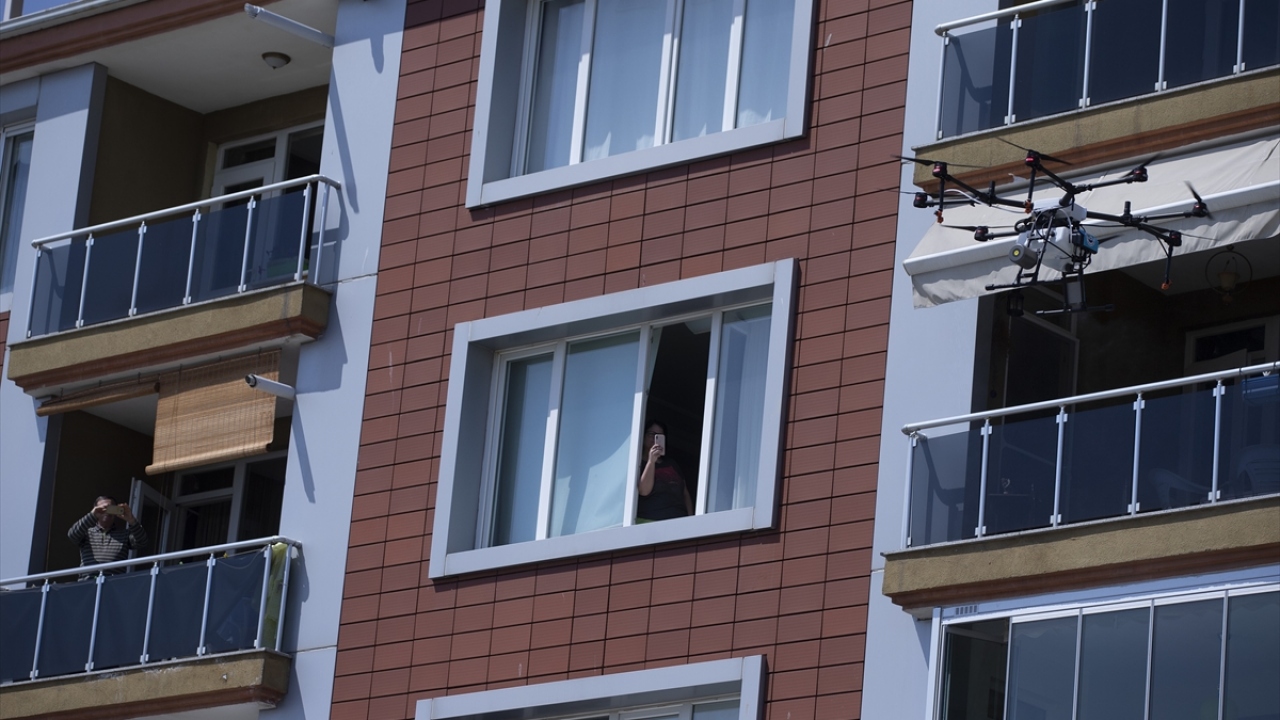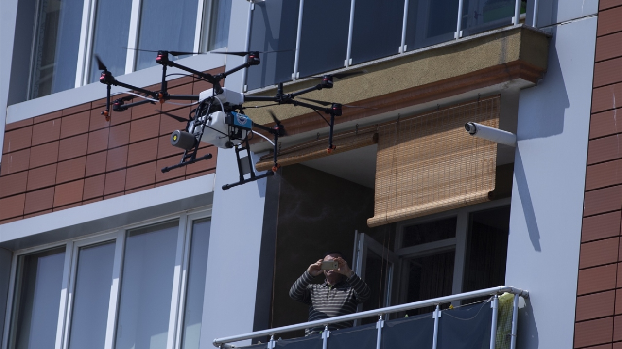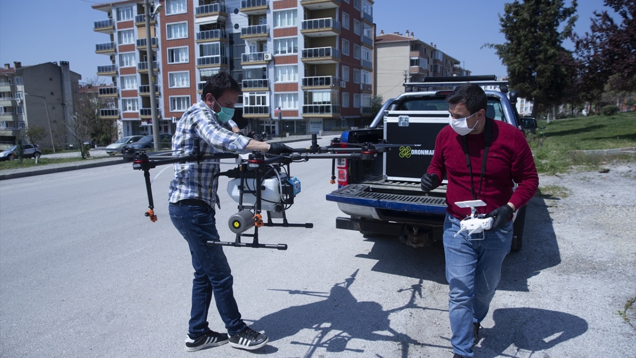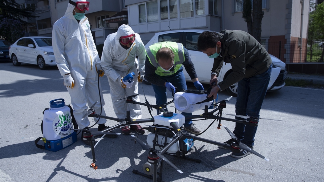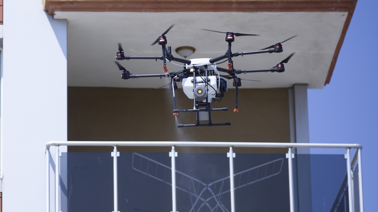 Tarım ilaçlamasında kullanılan hazneli insansız hava araçlarıyla, vaka görülen binaların ve çevresindeki binaların dış yüzeylerine havadan dezenfektan sıkılıyor. Daha sonra ekipler bu binaların içlerini de ilaçlıyor.