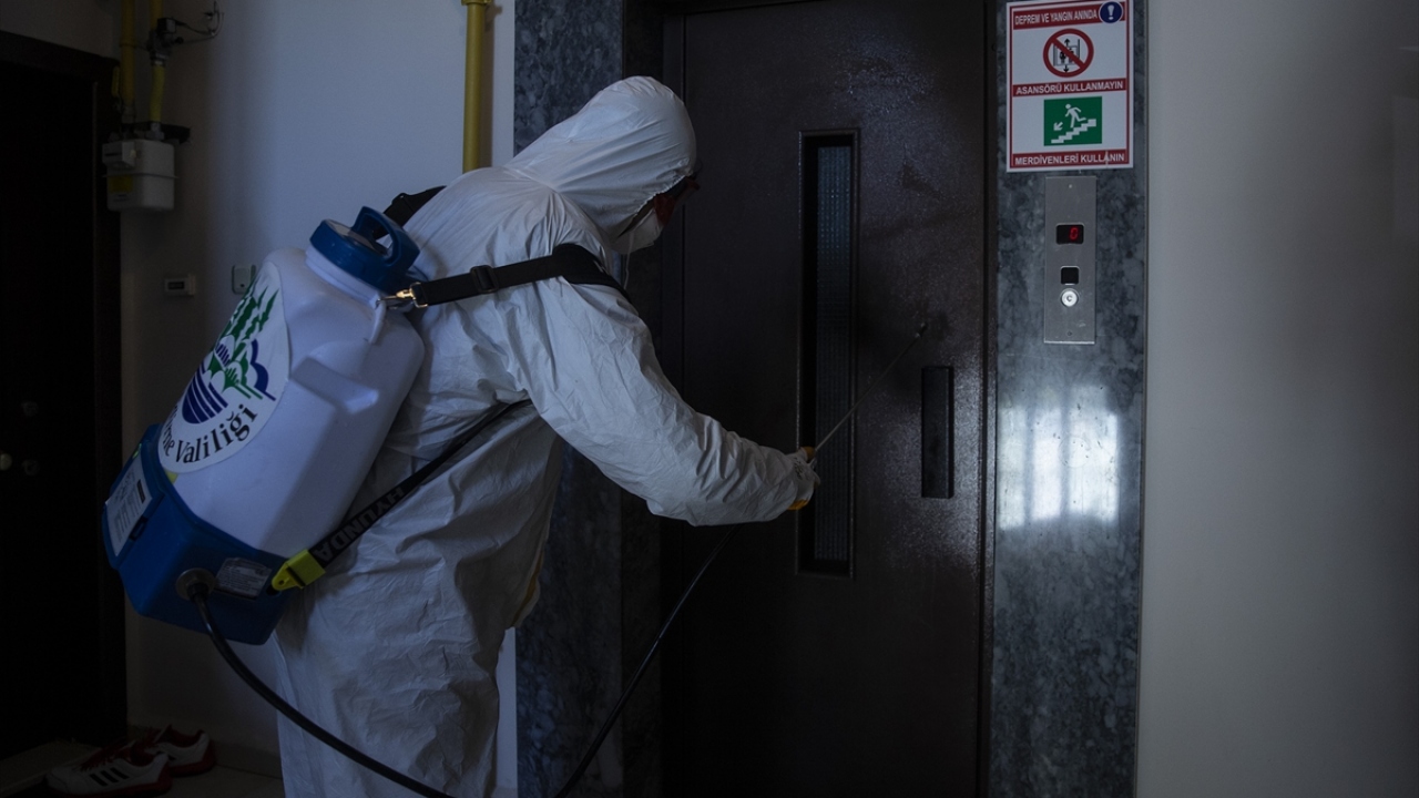 Her sabah yapılan planlama dahilinde görev yerlerine dağılan ekipler, apartmanların tırabzan, merdivenler ve asansörleri ile çevresine uzun süre etkili, insan sağlığına zararsız dezenfektanlar sıkıyor.