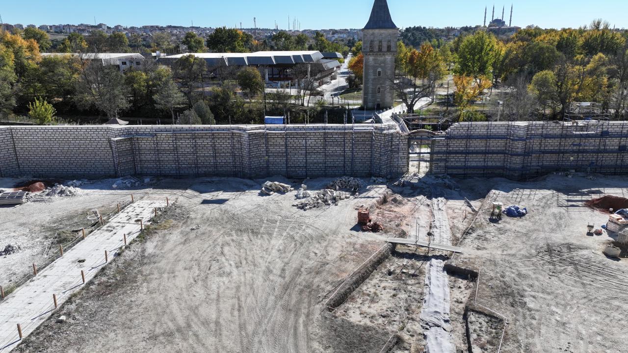 "Enderun Avlusu, yani ikinci avluda yürütülen kazı çalışmaları neticesinde ikinci avluyu çevreleyen yaklaşık 400 metre surun ortaya çıkarılması ve buna müteakiben bilim kurulu tarafından onaylanan projesiyle ihyası gerçekleştirildi. Biliyorsunuz Edirne Sarayı taşkın riski barındıran bir bölgede bulunuyor. 7 metre yüksekliği olan bu surların tarihi olarak inşası da bununla ilgiliydi. Bu surların ihyası bize özellikle taşkın riskine karşı öncelikli bir güvence sağlamış oldu, tarihin ihyasının yanında. Bununla birlikte DSİ ile birlikte taşkın önlemleriyle ilgili ilave çalışmalarımız devam ediyor."