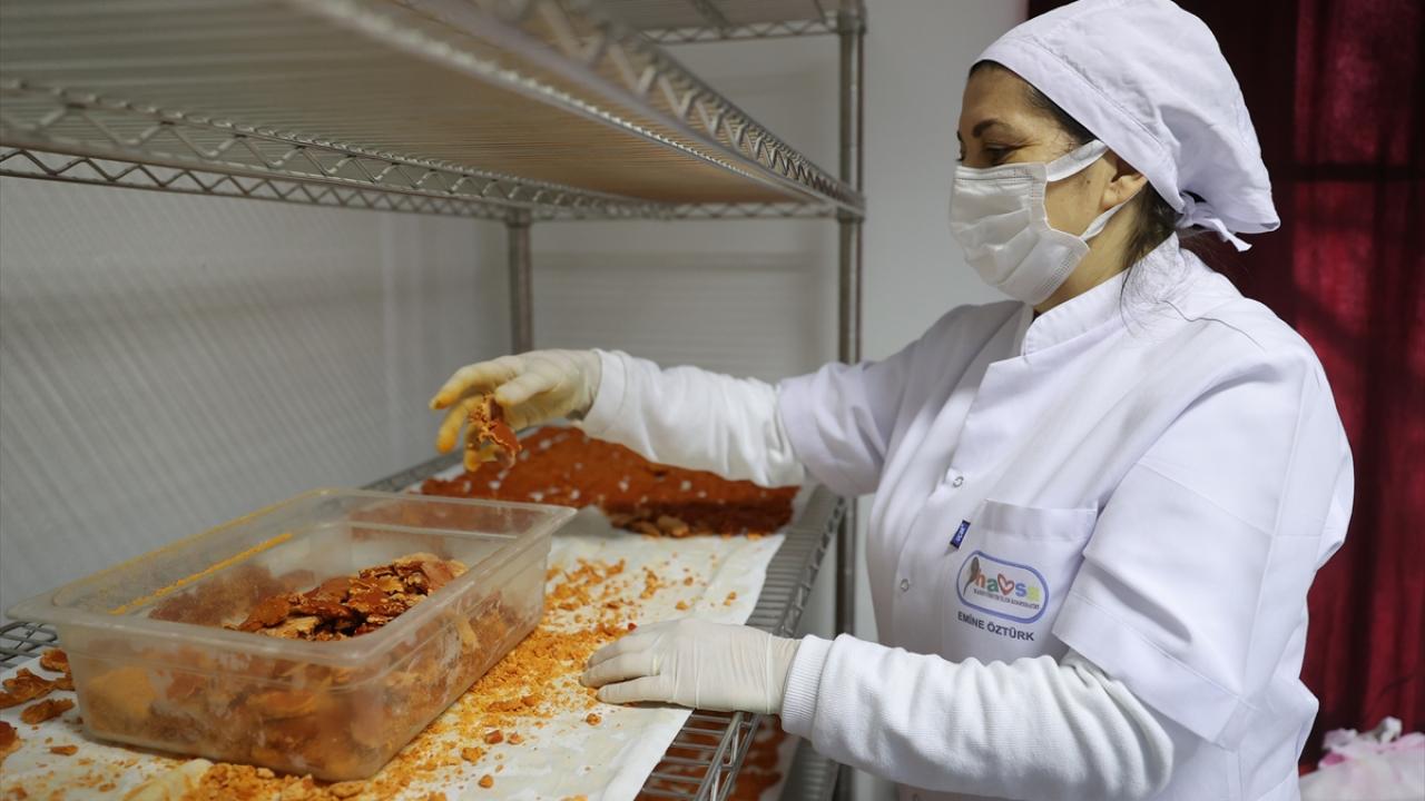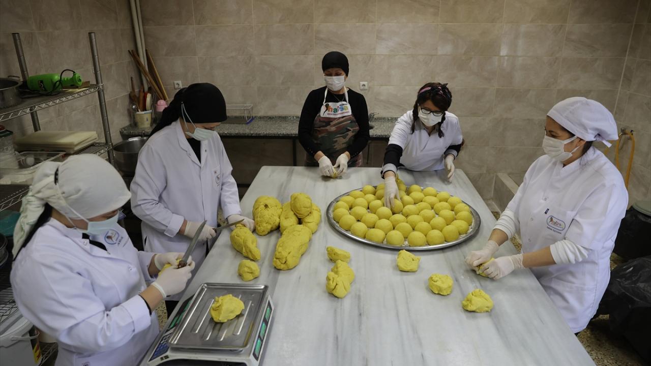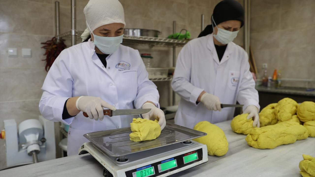 Evdeki işlerini tamamladıktan sonra üretim için tesise gelen kadınlar, siparişleri hazırlamak için gece gündüz çalışıyor. Kadınlara aileleri de manevi destek sunuyor.