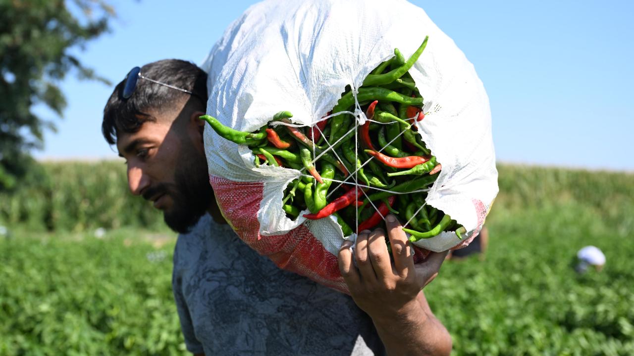 İşçilerden Selahattin Yaştut da günde yaklaşık 9 saat biber topladıklarını belirtti.