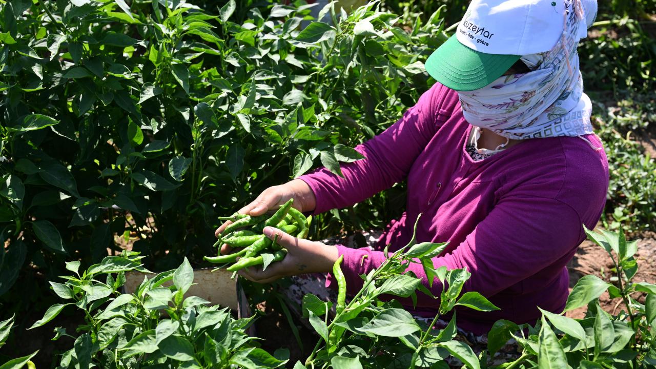 Tarlada yaklaşık 40 işçinin biber topladığını anlatan Yaştut, "Paramızı kazanmak için mücadele veriyoruz. Bir işçi günde 200 kilogram biber topluyor ve 700 lira kazanıyor." şeklinde konuştu.
