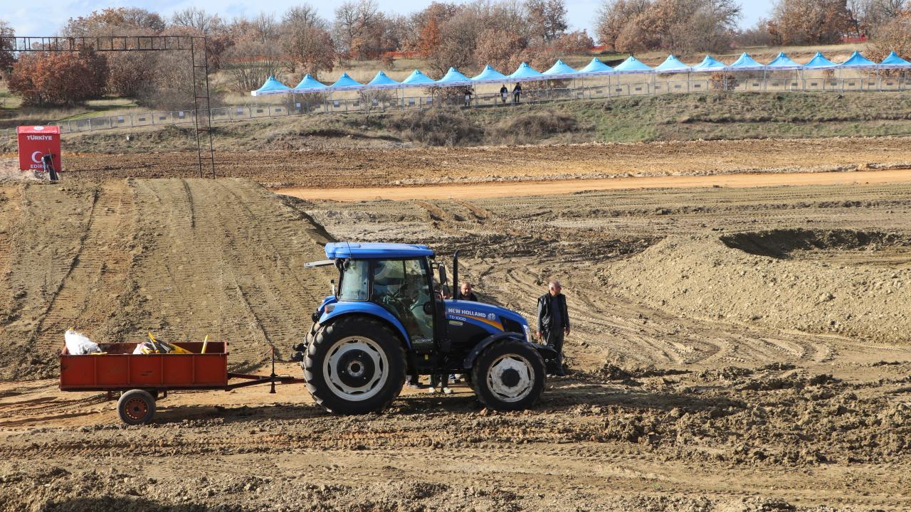Yarışlar öncesi pistte son düzenlemeler yapıldı. İş makineleriyle toprak parkur, yarışlar için hazırlandı.