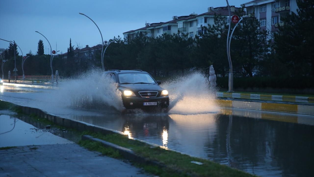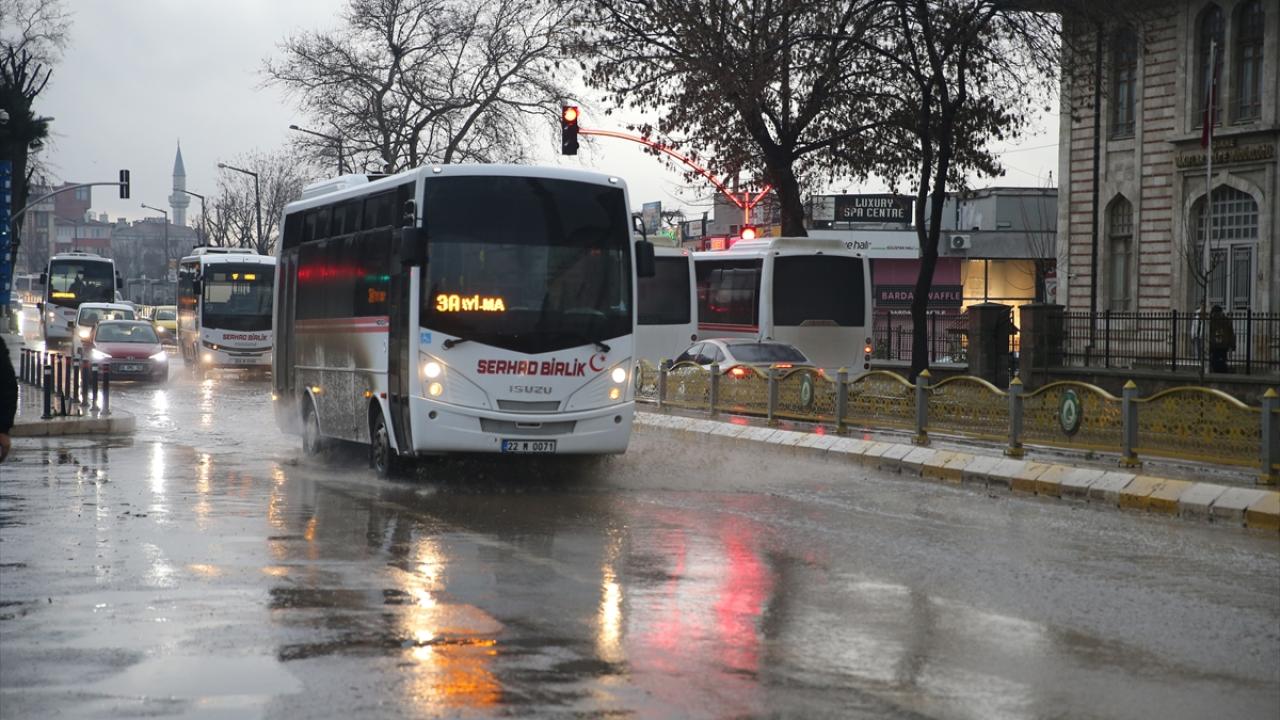 Edirne`de sabah saatlerinde başlayan sağanak nedeniyle cadde ve sokaklarda su birikintileri oluştu.