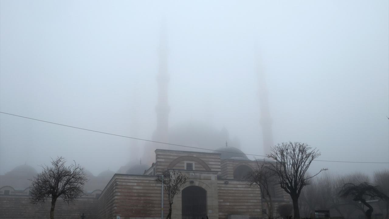 Kentin simgelerinden Selimiye Camisi sislerin arasında kaldı.