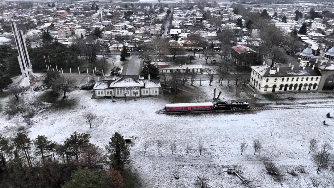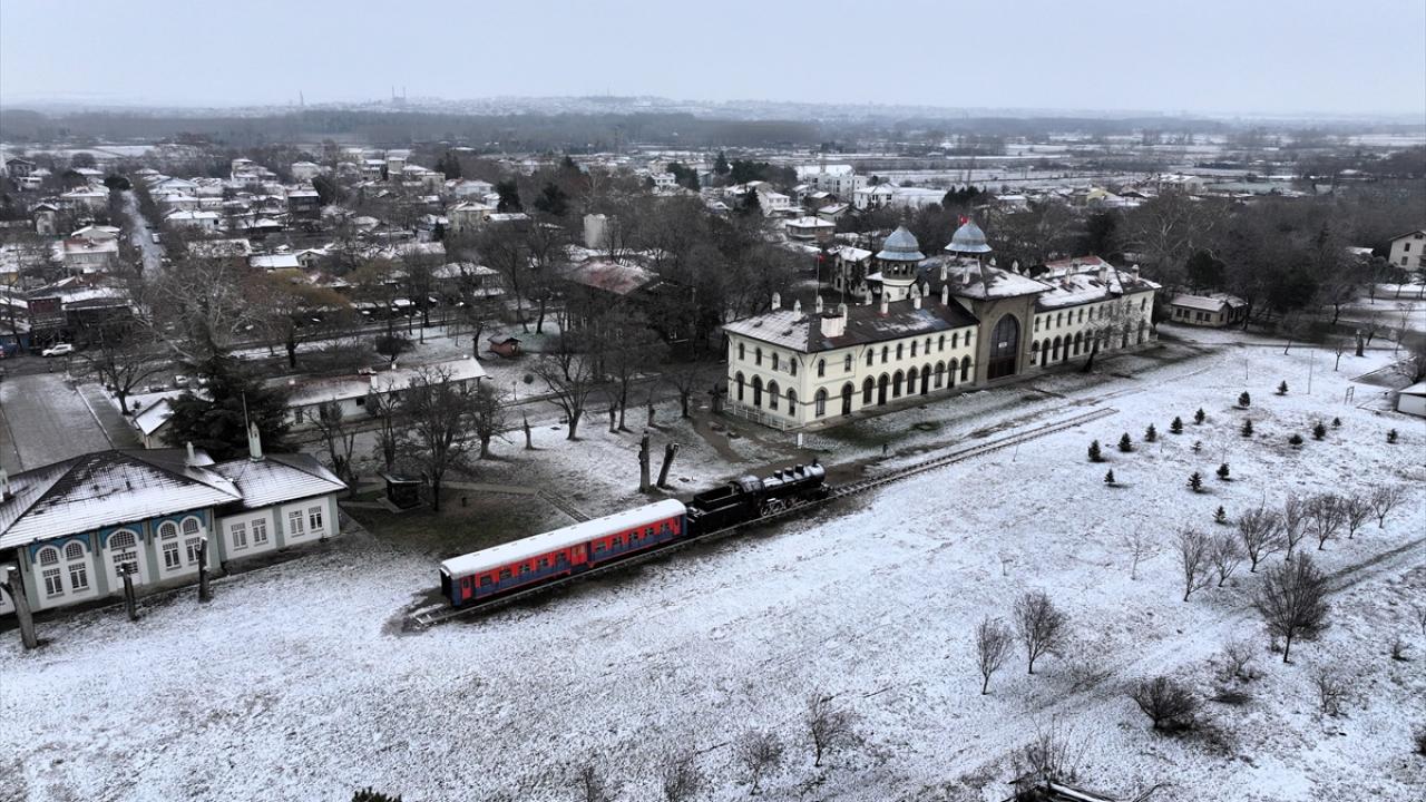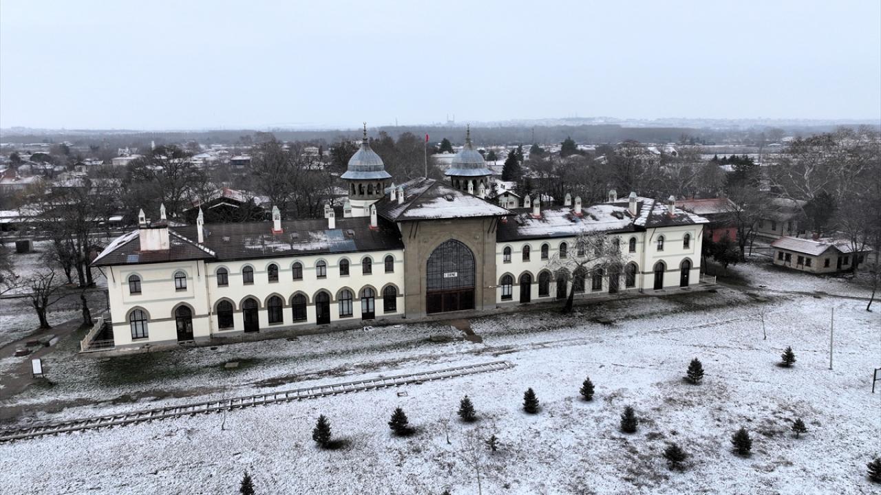 Tarihi yapıların olduğu Trakya Üniversitesinin Karaağaç Yerleşkesi de kar altında adeta bir kartpostalı andırdı.