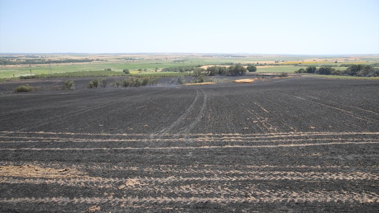 Edirne'de, hasat esnasında biçerdöverin tutuşması sonucu çıkan yangında 100 dekar buğday tarlası zarar gördü. Ekiplerin müdahalesiyle söndürülen yangından yaklaşık 150 dönüm anız alanı da etkilendi. Yangın nedeniyle biçerdöver kullanılamaz hale geldi.