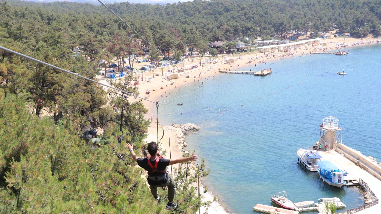 "Denizin üzerinden giden 310 metrelik zipline mevcut. Ayrıca macera parkuru dediğimiz 39 farklı spor branşının bulunduğu tırmanma duvarından okçuluğa, atıcılığa, canlı langırta ve yükseklik parkurlarının olduğu çeşitli aktivite ve oyunlarımız mevcut. Öte yandan dünyanın ve ülkemizin içerisinden geçtiği bu zor günlerde kampçılığa ilgi daha da arttı. İnsanlar sosyal mesafenin daha uygun olduğu alanları tercih etmeye başladılar."