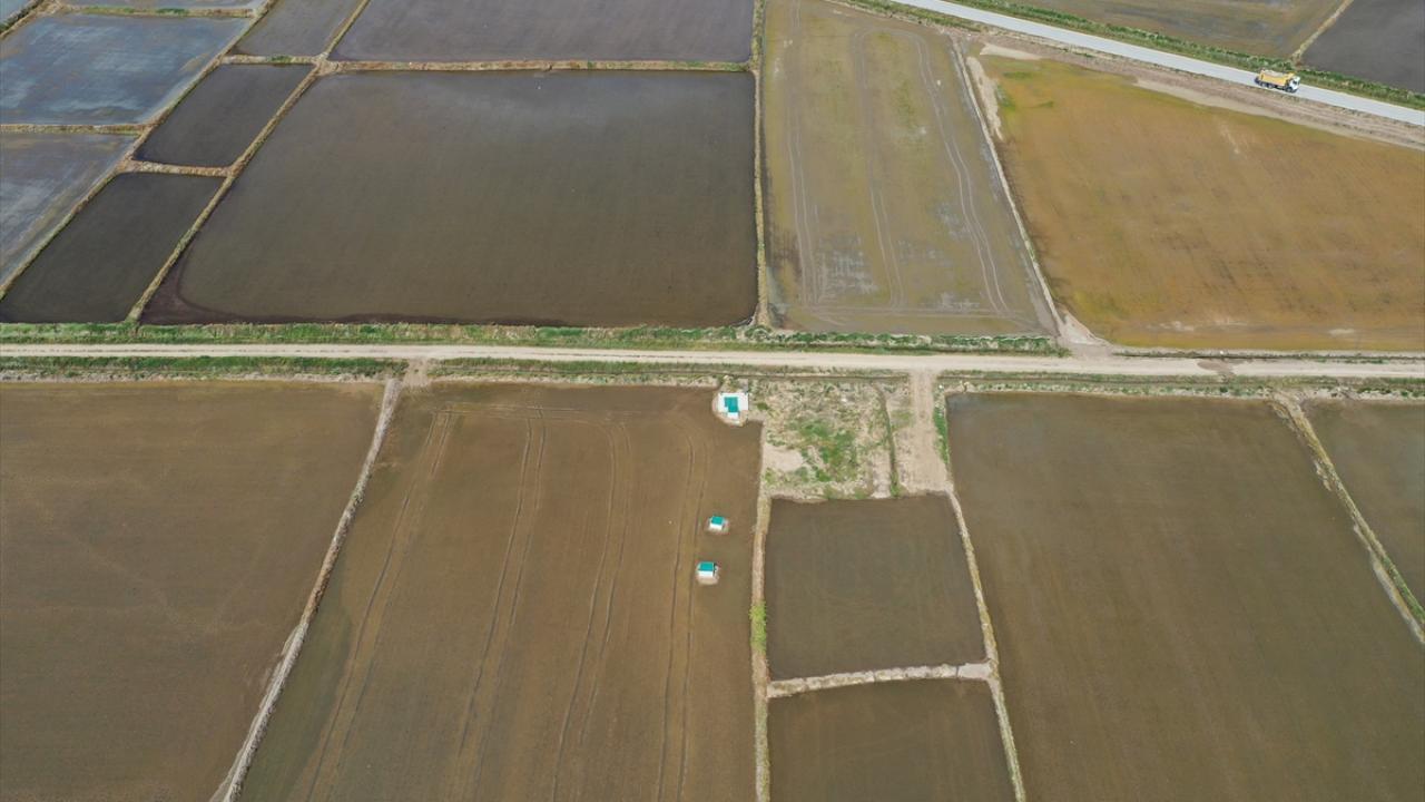 Ekim öncesi çeltik tavası adı verilen alanlarda ön hazırlıkları yapan üreticiler, tavalara su salınmasının ardından çeltik tohumlarını toprakla buluşturdu.