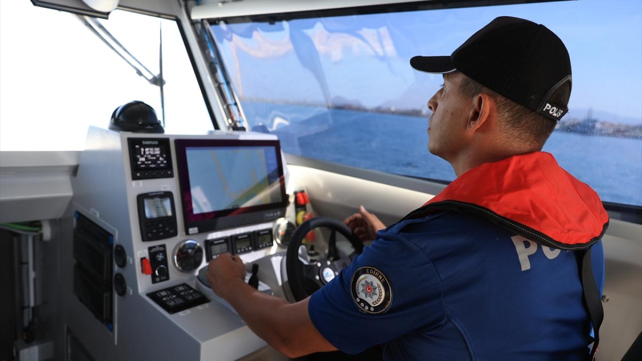 Polis ekipleri yerli üretim kontrol botu ile Enez Limanı`nda faaliyetlerini sürdürüyor.