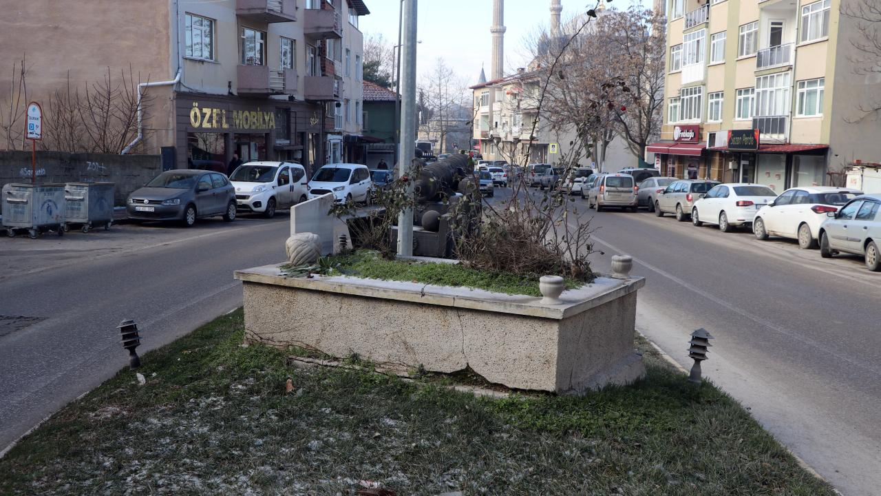 Fatih Sultan Mehmet`in İstanbul`un fethi için top döktürdüğü yerde bulunan mezarların olduğu bölüme daha sonra şahi topu heykeli de konuldu.