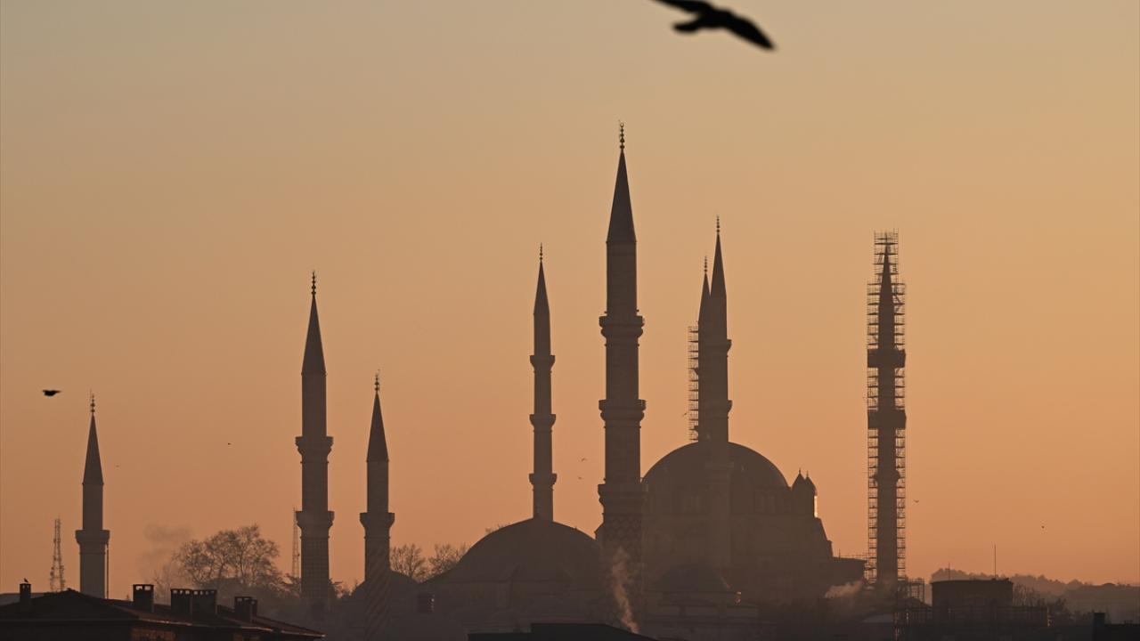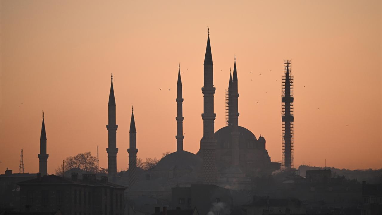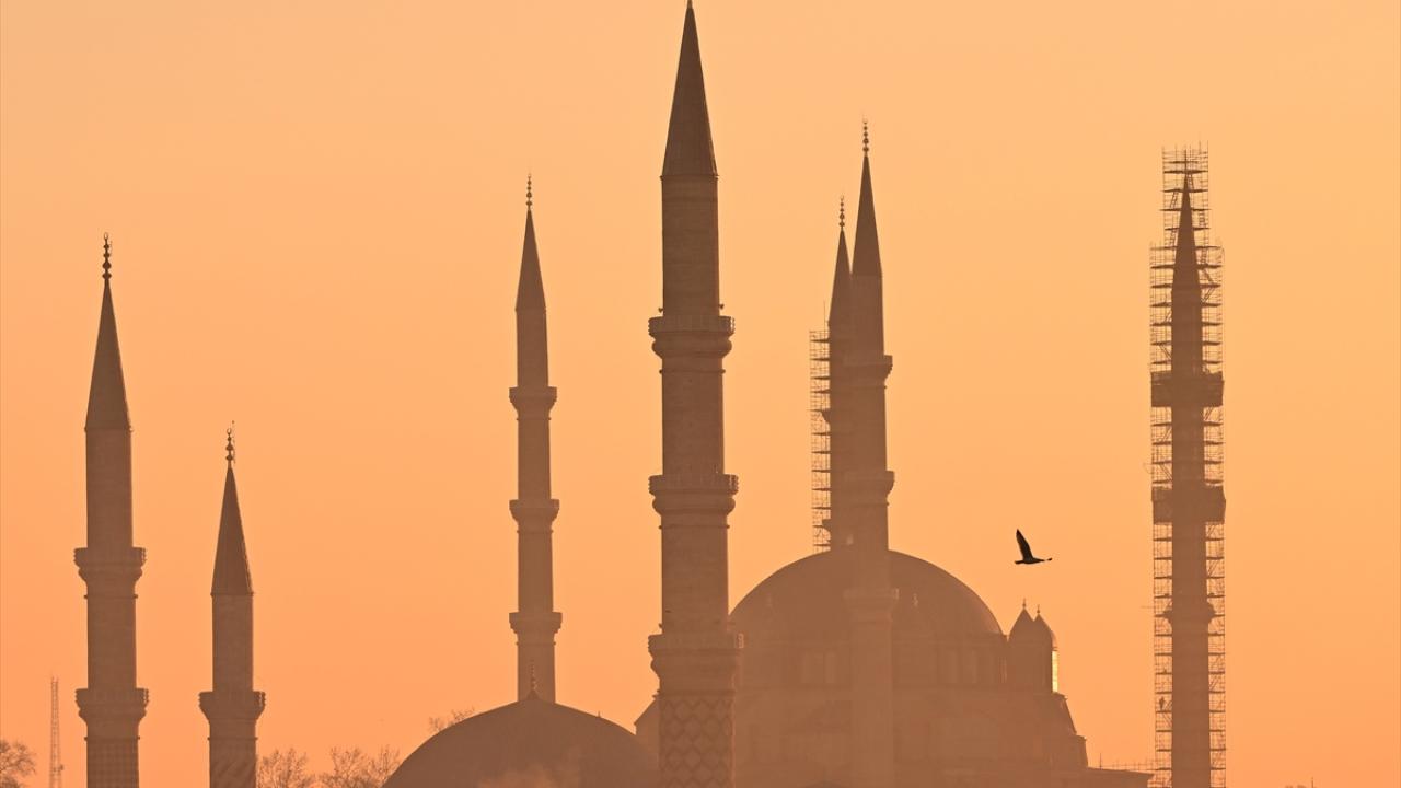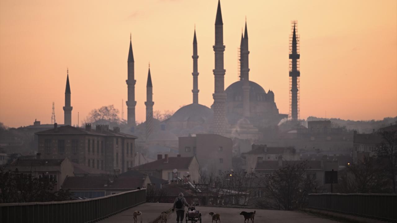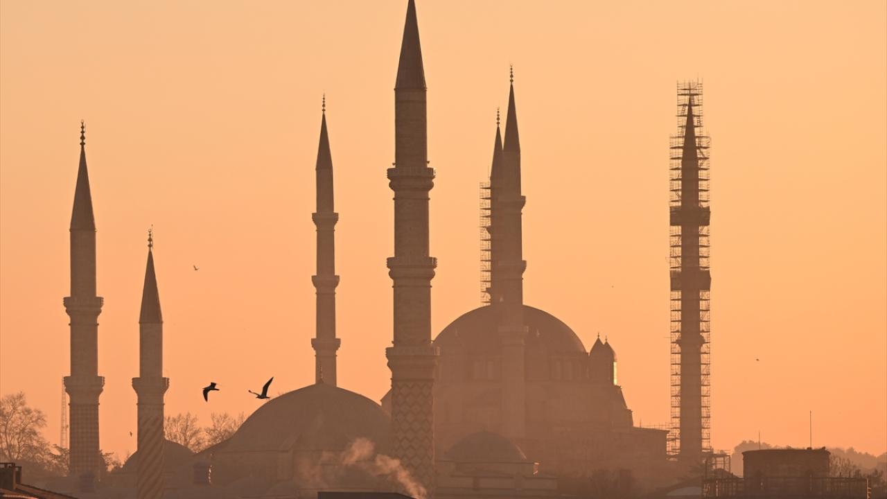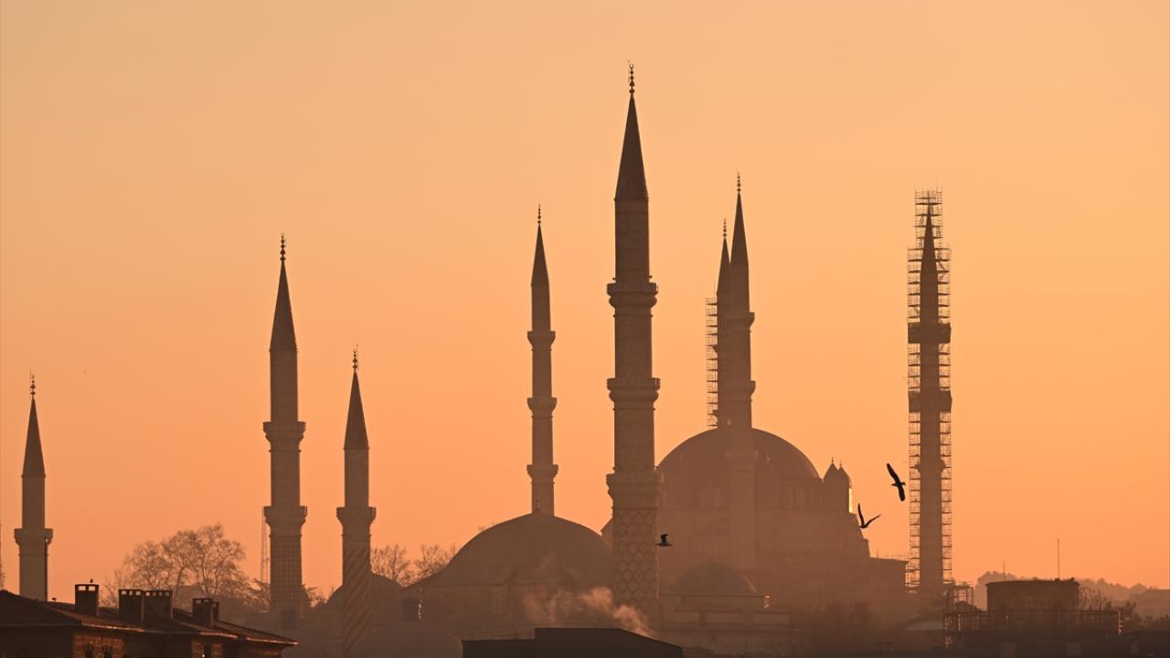 Edirne'de gün doğumu Selimiye ve Üç Şerefeli Camilerle birlikte güzel görüntü oluşturdu.
