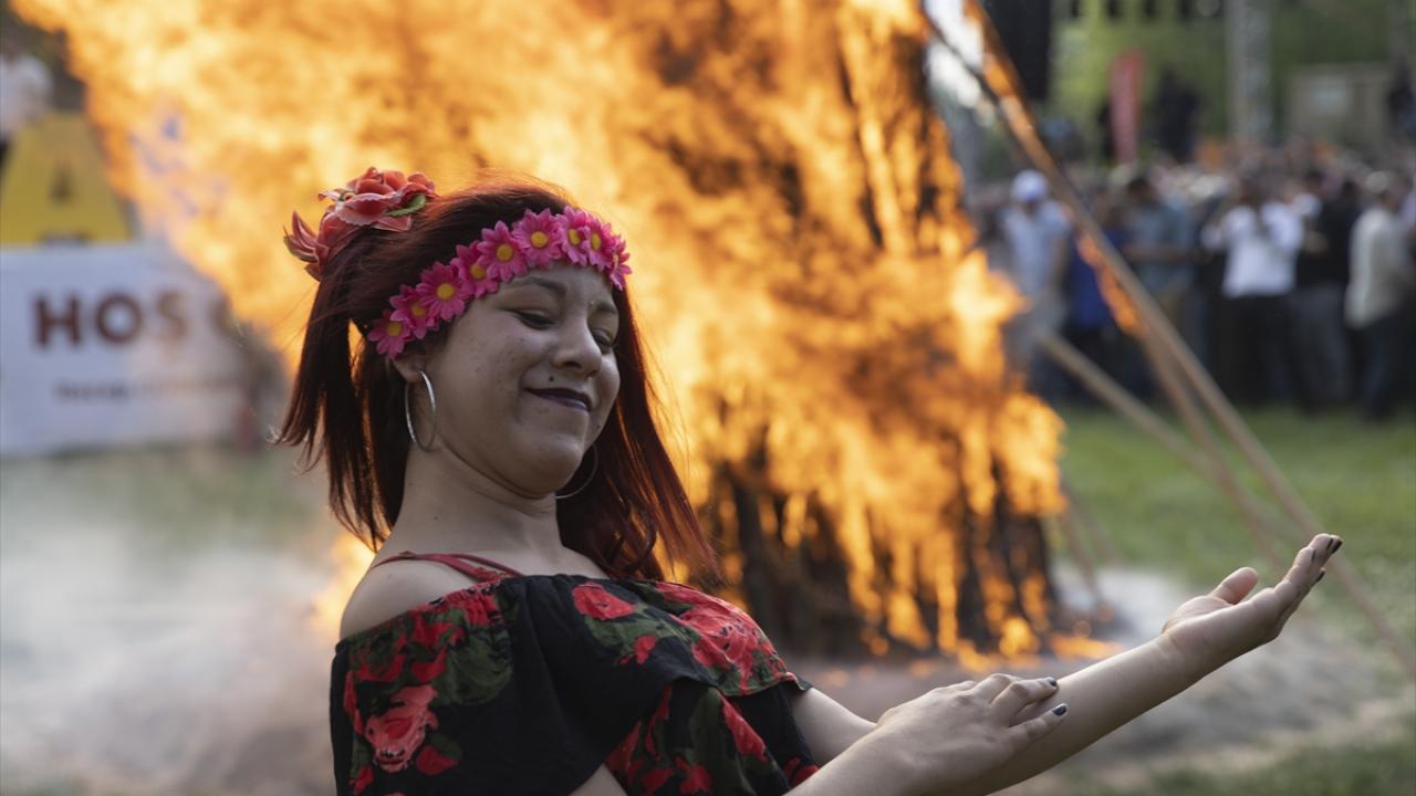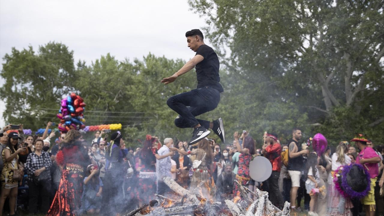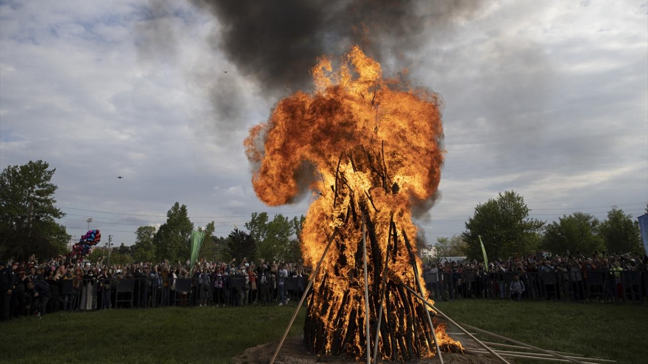 Baharın gelişinin kutlandığı, bolluk, bereketin temenni edildiği Kakava`da binlerce katılımcı dev ateş etrafında dans etti.