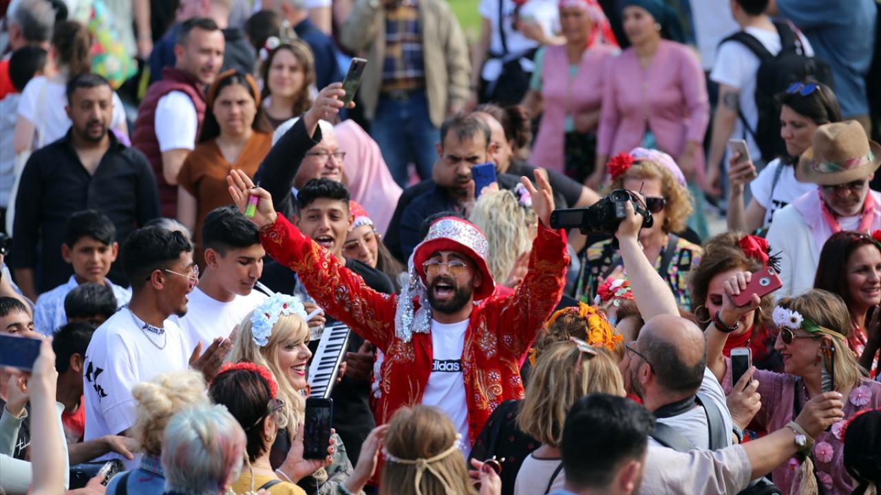 Çeşitli dans gösterileri ve konserlerin yer aldığı etkinlik, yarın şafak sökmeden Tunca Nehri kenarında yapılacak kutlama programıyla devam edecek.
