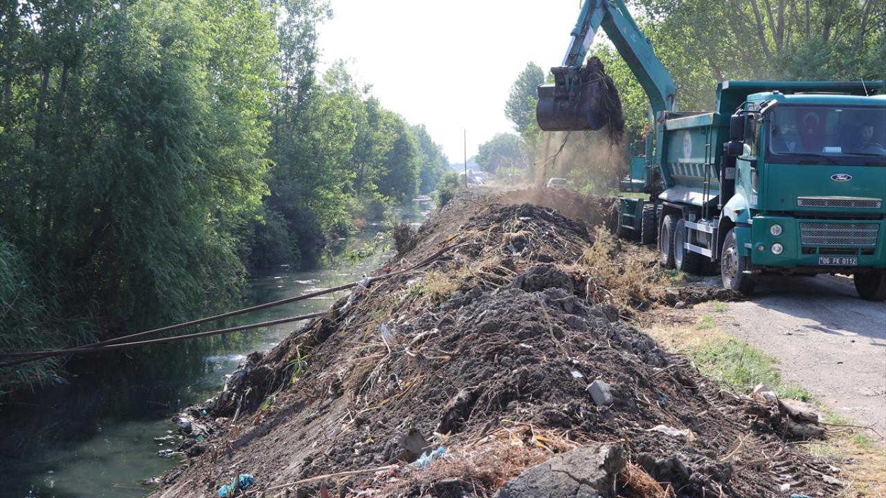 Kirlilikle gündeme gelen kanal, iş makineleri yardımıyla temizlendi, üzerindeki çöp ve yosun tortuları alındı.