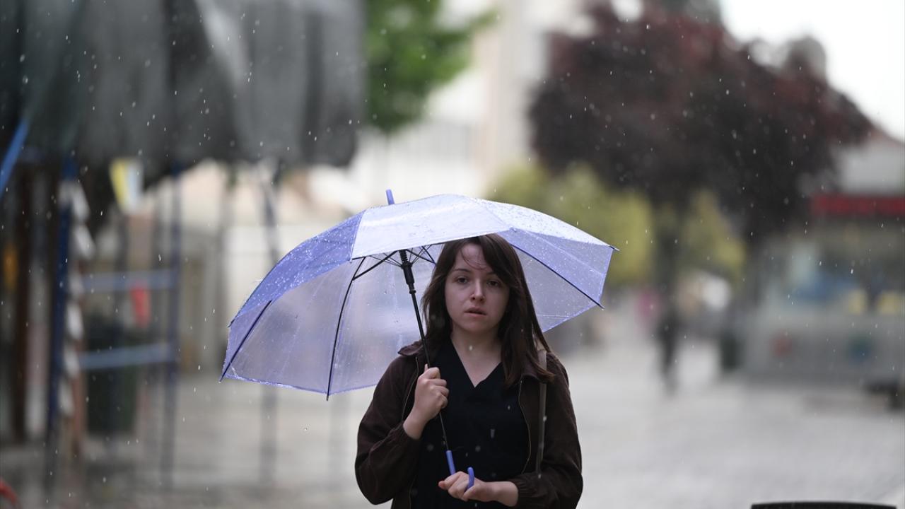 Bazı vatandaşlar şemsiyelerle yağmurdan korunurken, bazıları ise iş yerleri girişlerinde yağışın dinmesini bekledi.