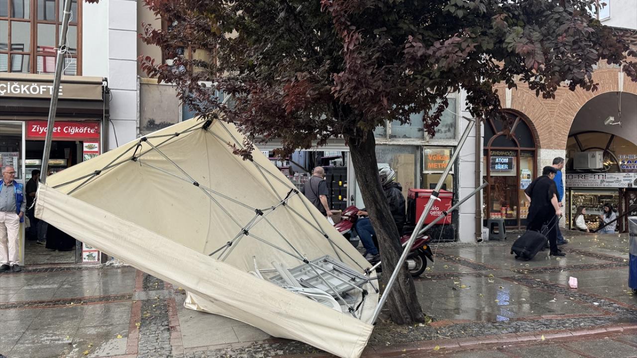 Öte yandan, Saraçlar Caddesi`nde kurulu bir stant çadırı da kuvvetli rüzgarda devrildi.