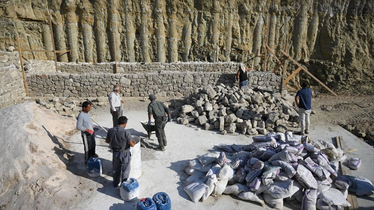 Tarihi yapının yeniden ayağa kaldırılması için inşa çalışmaları sürüyor.
