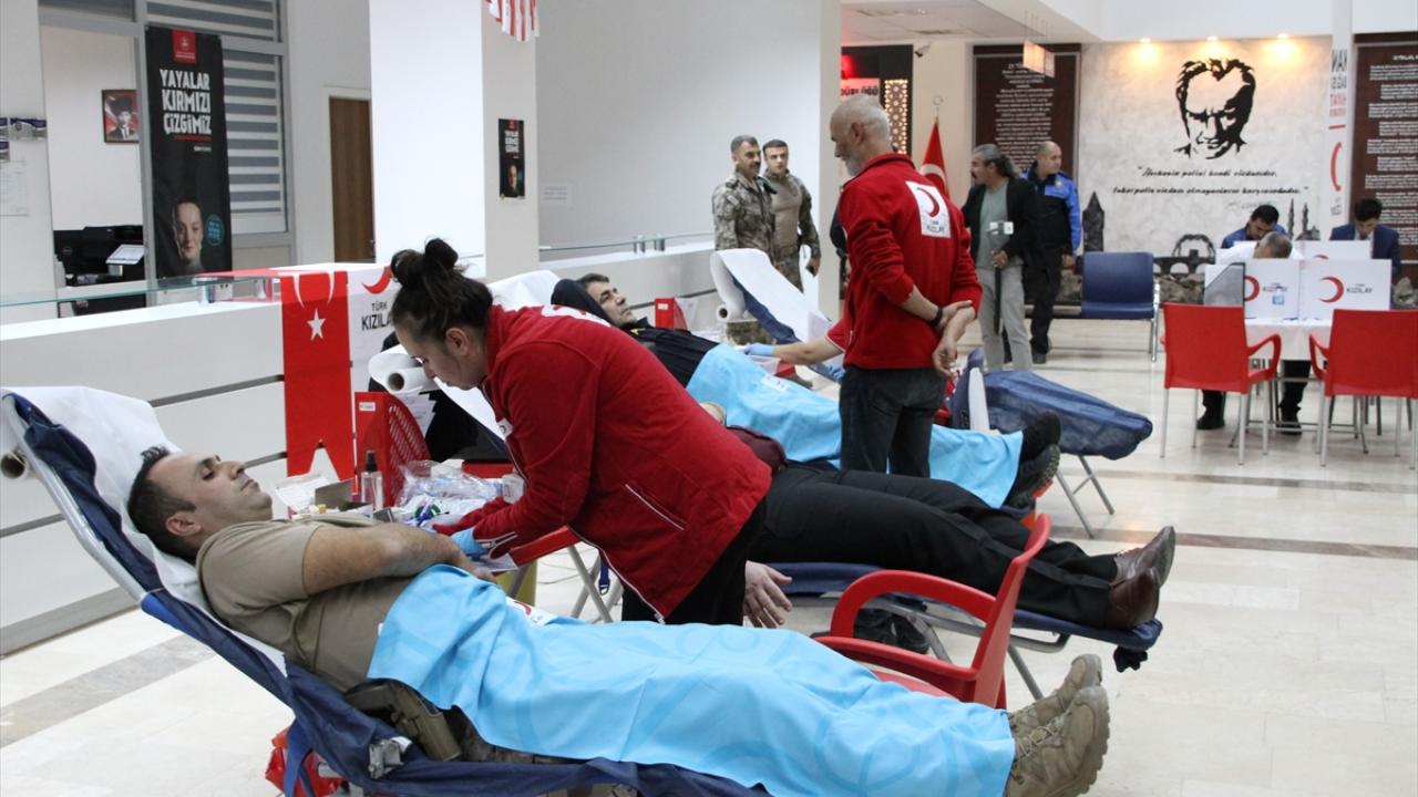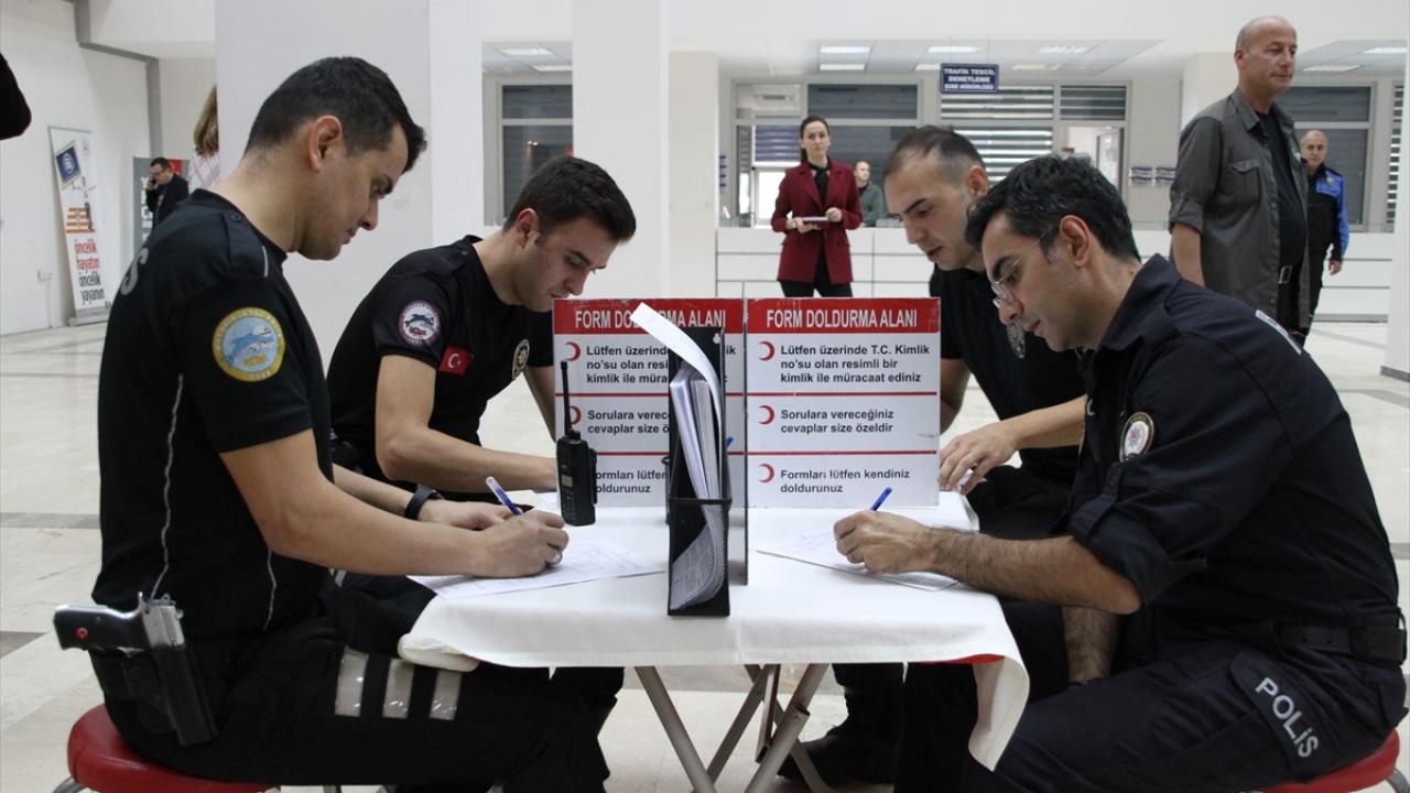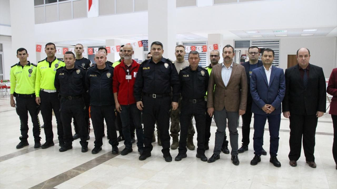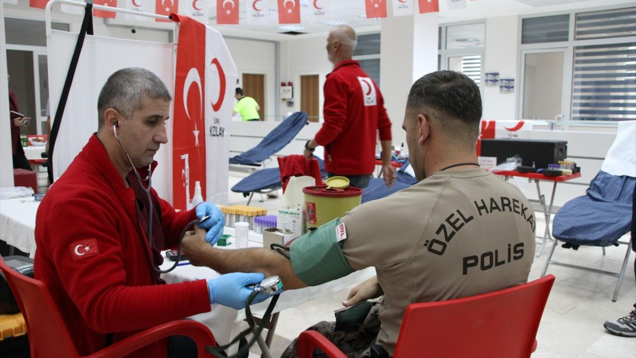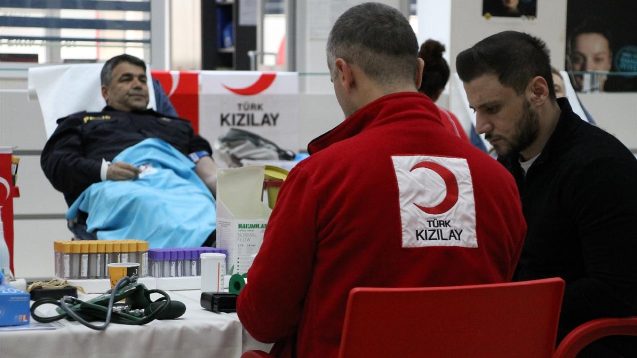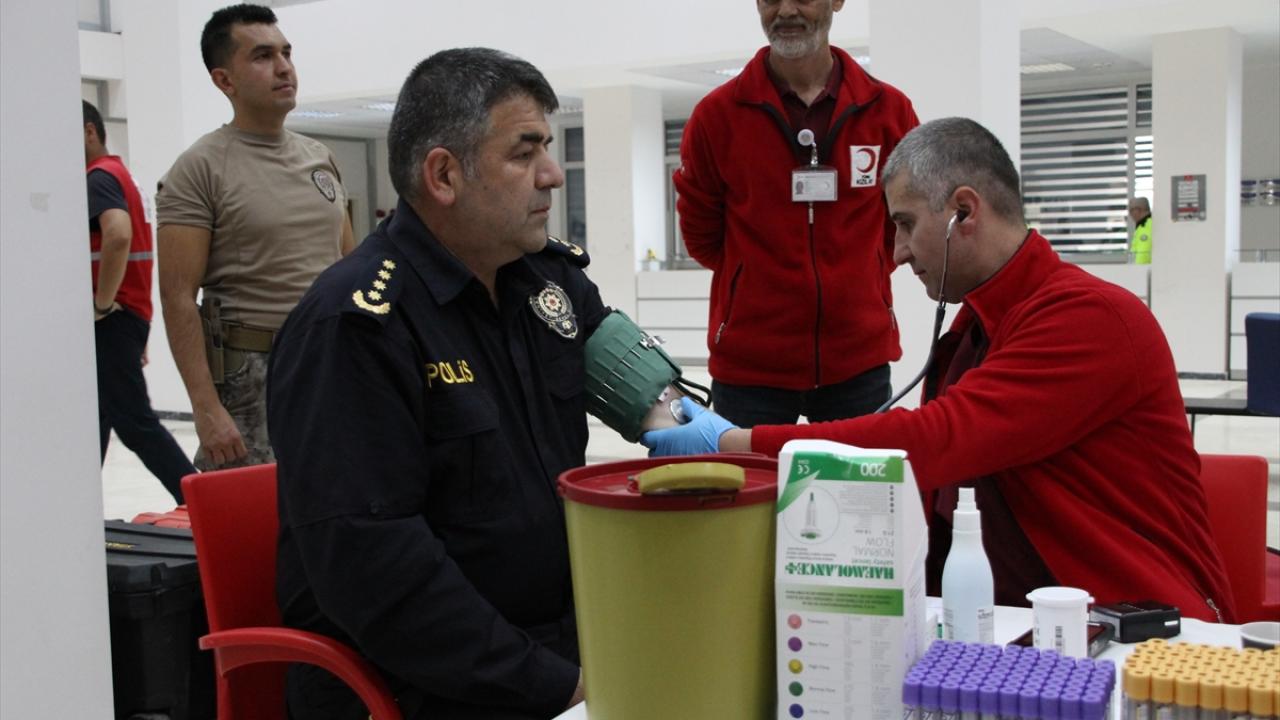 İl Emniyet Müdürlüğü içerisinde kurulan stantlarda emniyet personelleri kan bağışı öncesi form doldurdu.