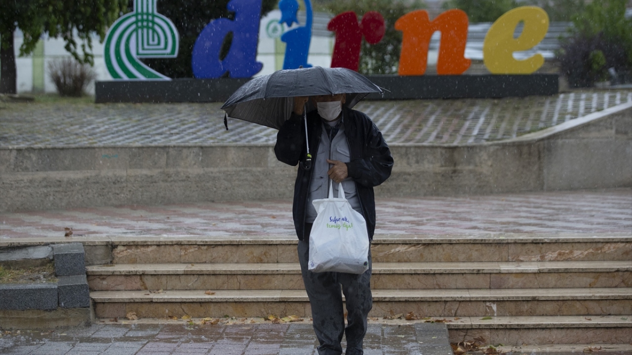 Edirne'de öğle saatlerinde başlayan sağanak etkili oldu.