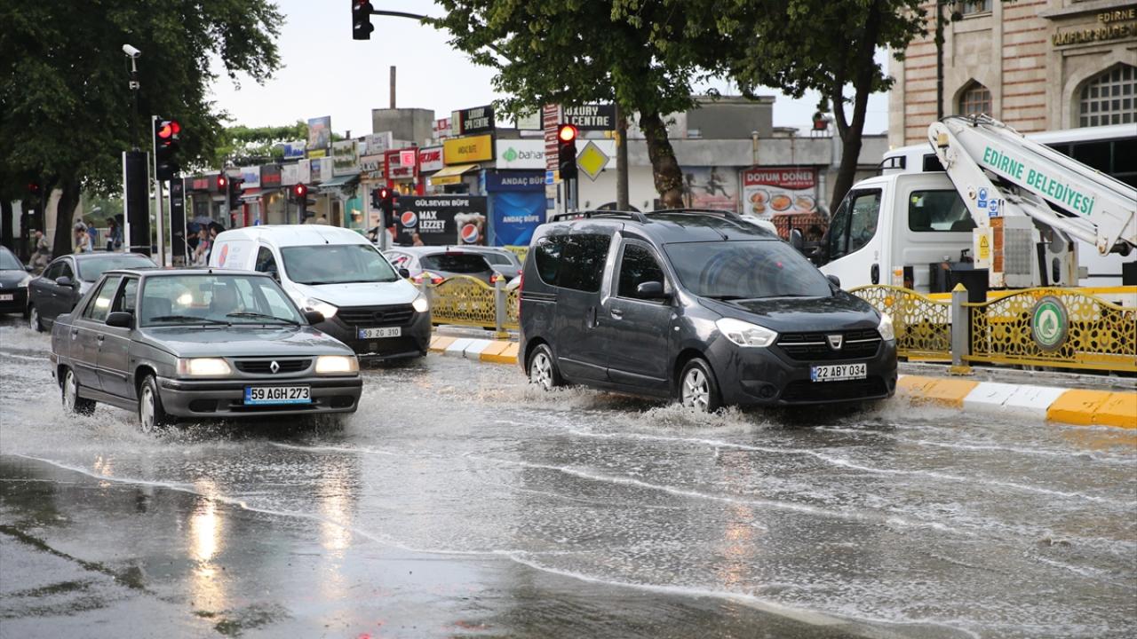 Edirne'de sağanak yaşamı olumsuz etkiledi.