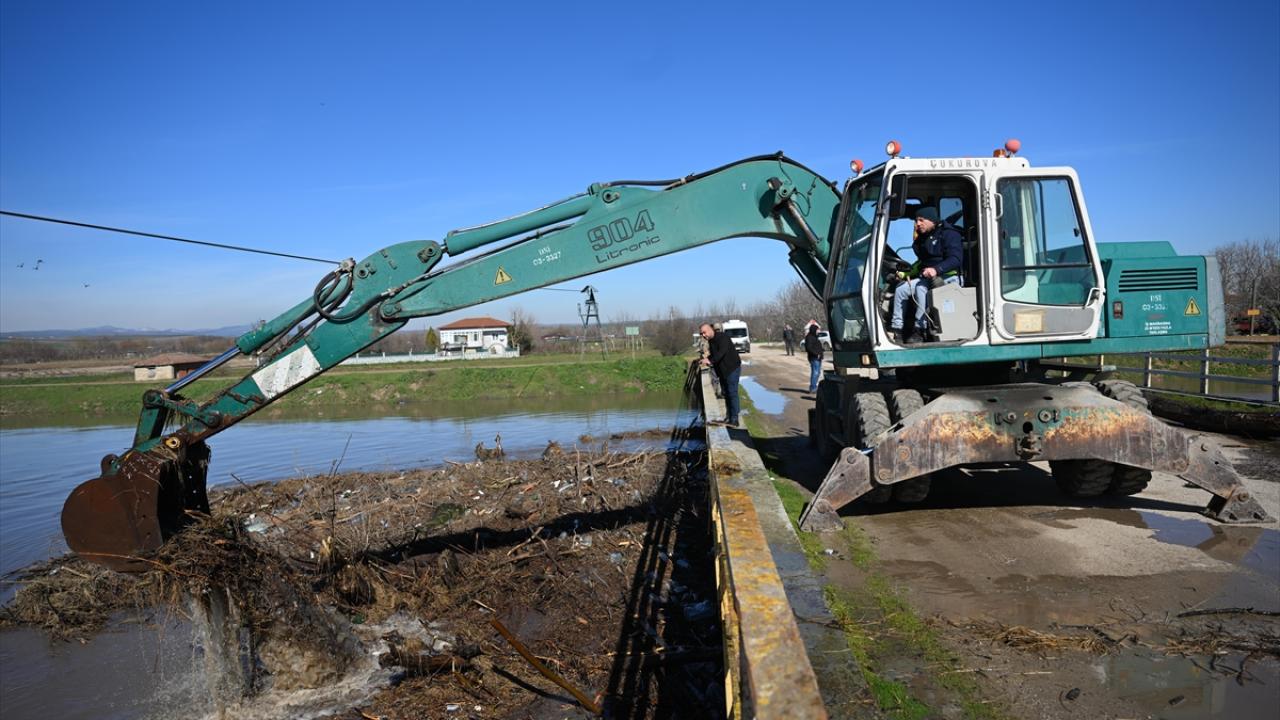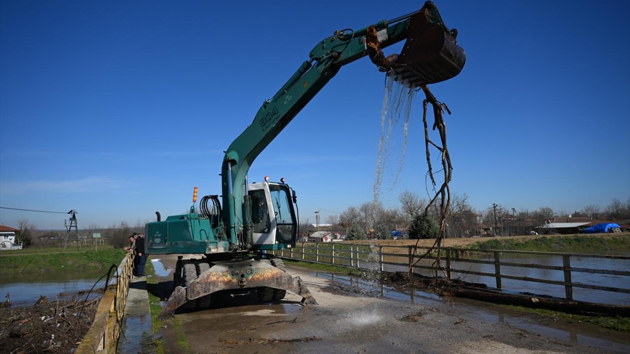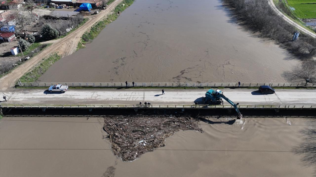 Edirne’de debisi artan Meriç ve Tunca nehirleri üzerindeki köprülerin, ağaç gövdeleri ve çöplerle tıkanan gözleri temizleniyor.