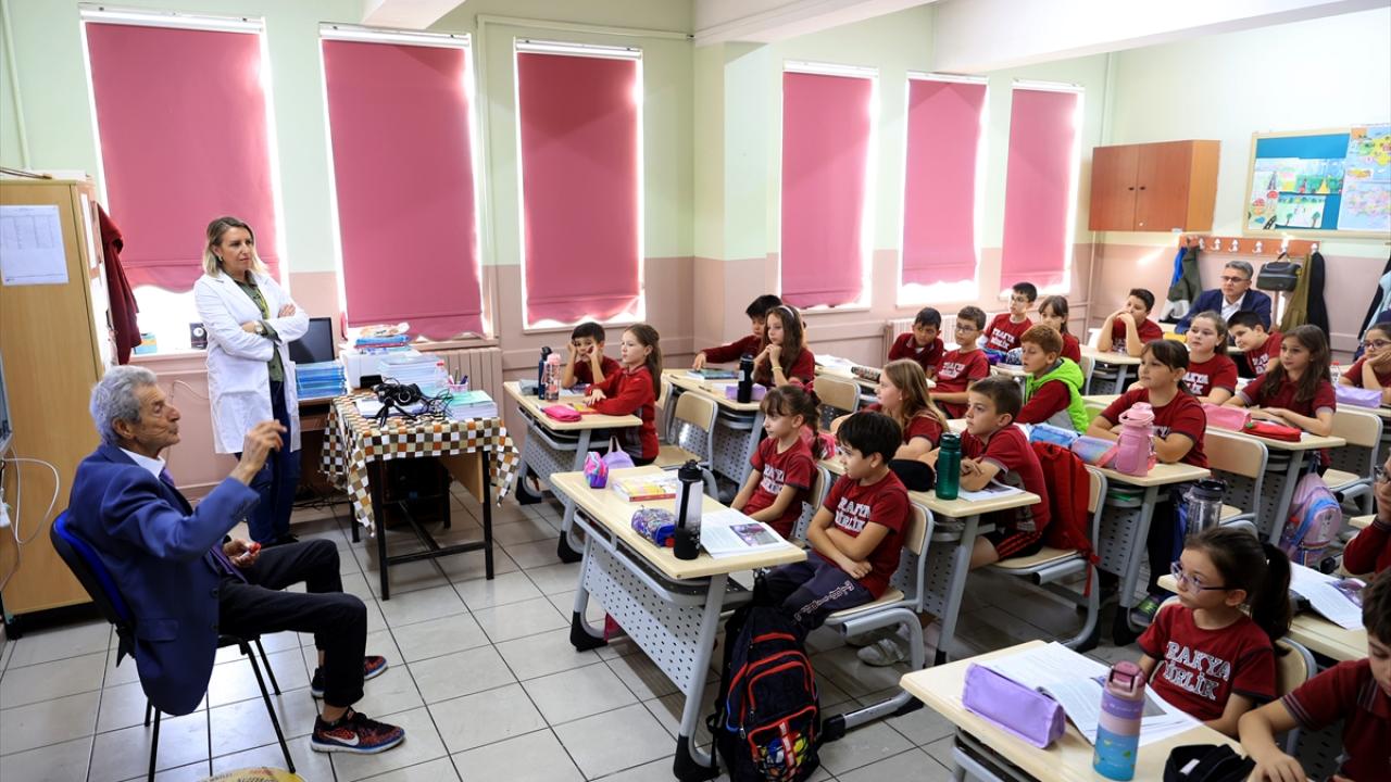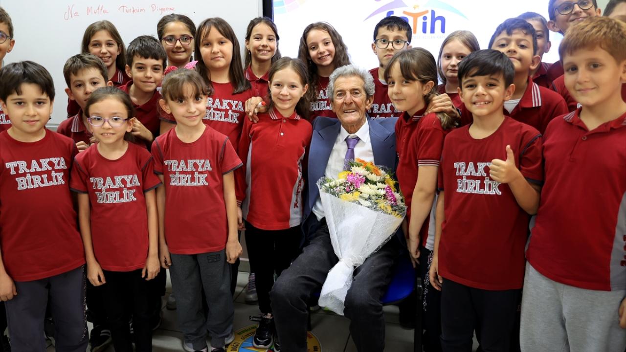 Trakya Birlik İlkokulu`nda eğitim gören 4`üncü sınıf öğrencilerine anılarını anlatan Sedat öğretmen, kara tahtanın başındaki günleri hatırlayınca duygulandı.