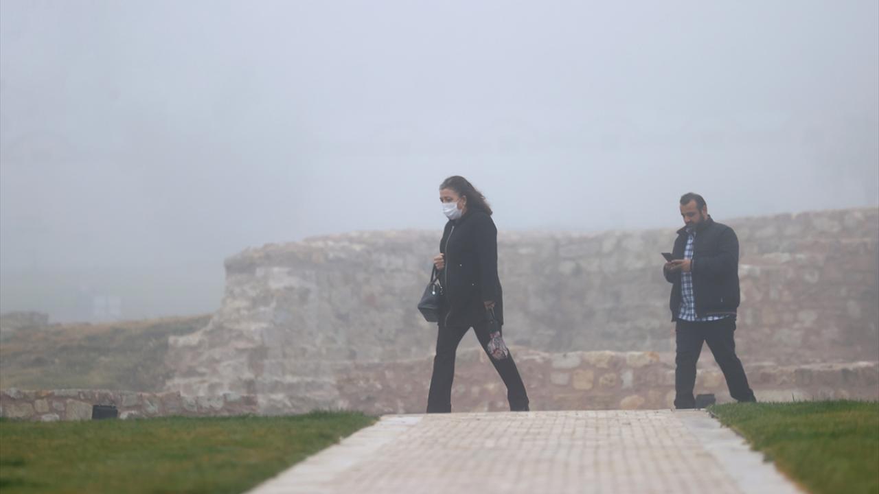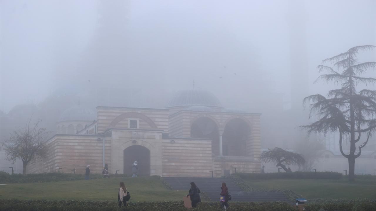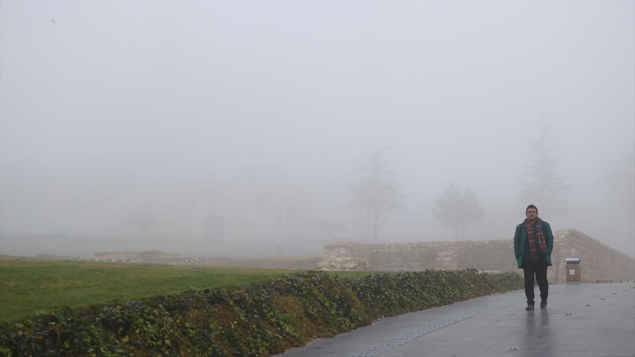 Görüş mesafesinin yer yer 30 metreye kadar düştüğü kentte tarihi yapılar da sis bulutu altında kaldı.