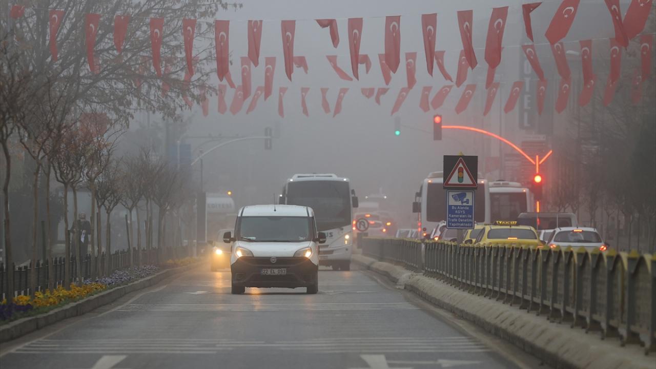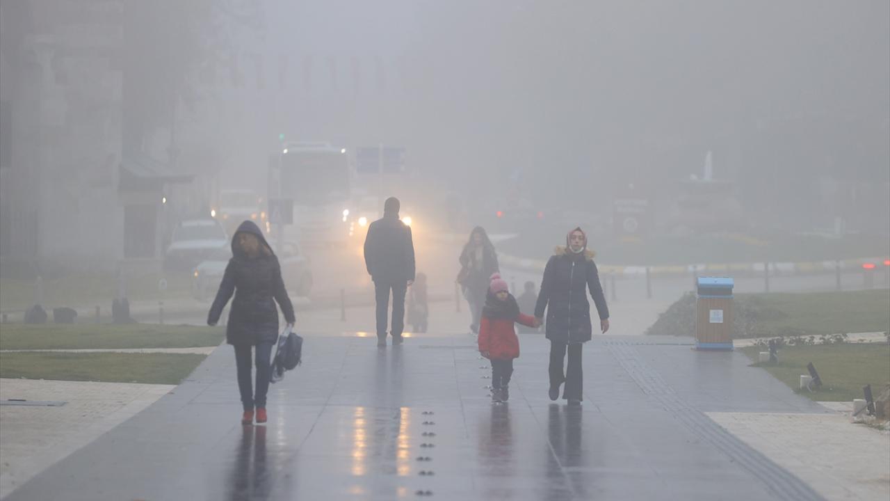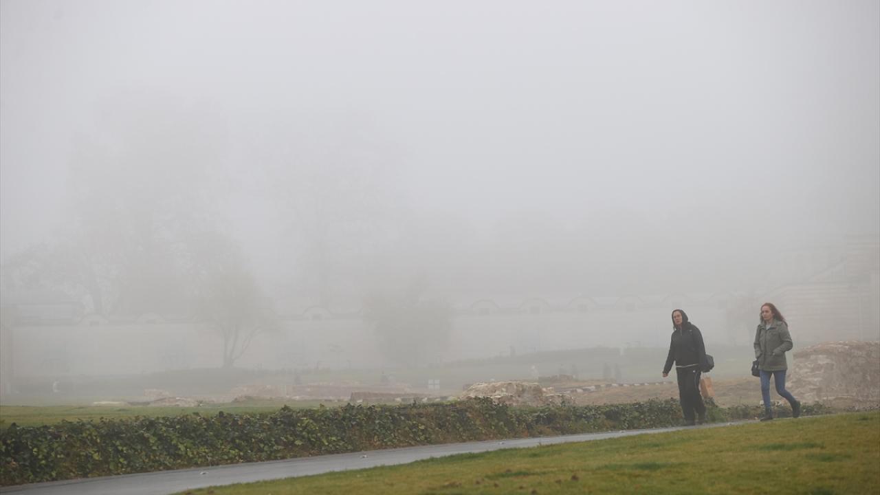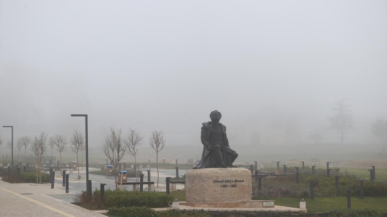 Görüş mesafesinin yer yer 30 metreye kadar düştüğü kentte tarihi yapılar da sis bulutu altında kaldı.