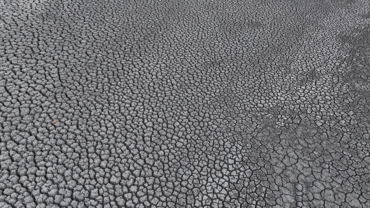 Kuruma nedeniyle göletin tabanında derin çatlaklar oluştu.