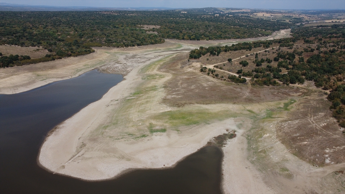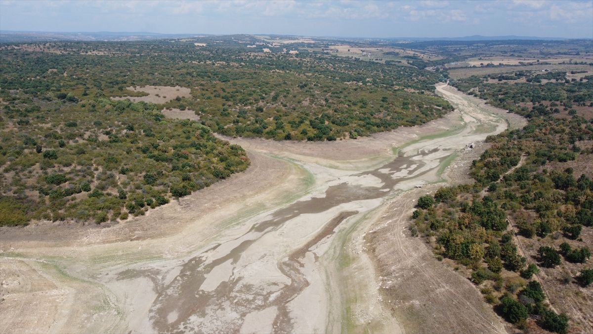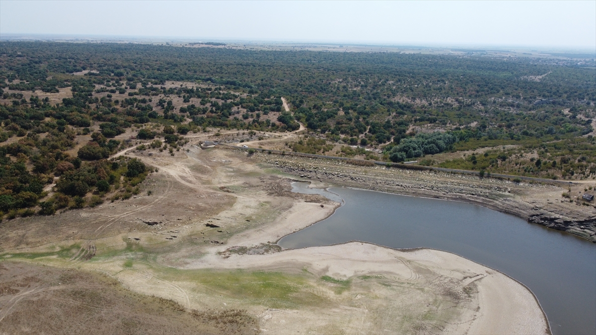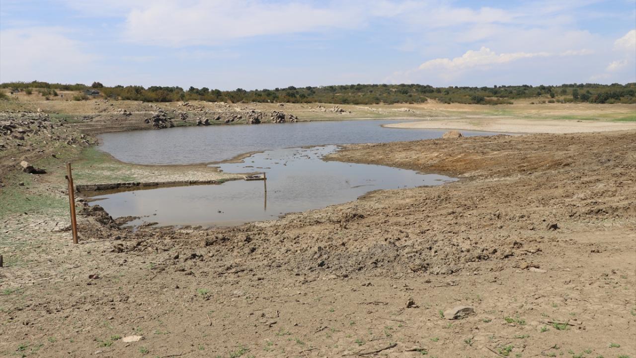 Edirne'de etkili olan kuraklık ve aşırı sıcaklara bağlı yaşanan buharlaşma nedeniyle 6 bin dönüm tarım arazisini sulayan Keramettin Göleti dip seviyeyi gördü.