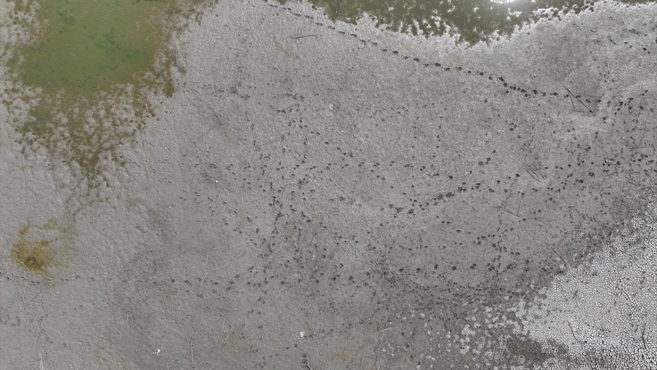 Su seviyesinin azalması nedeniyle gölet tabanında sazlık ve otluk alanlar oluştu.