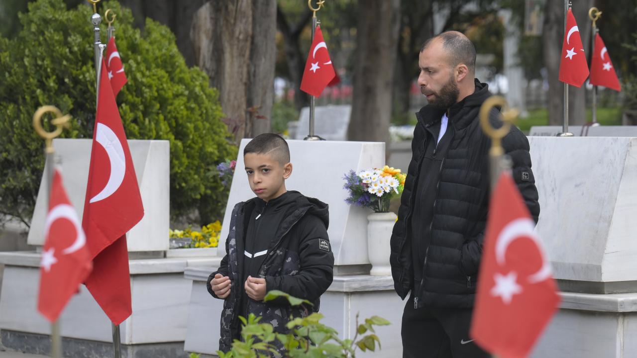 Ramazan Bayramı'nın birinci gününde Edirnekapı Şehitliği'ne gelen aileler, şehit yakınlarının kabirlerini ziyaret etti.
