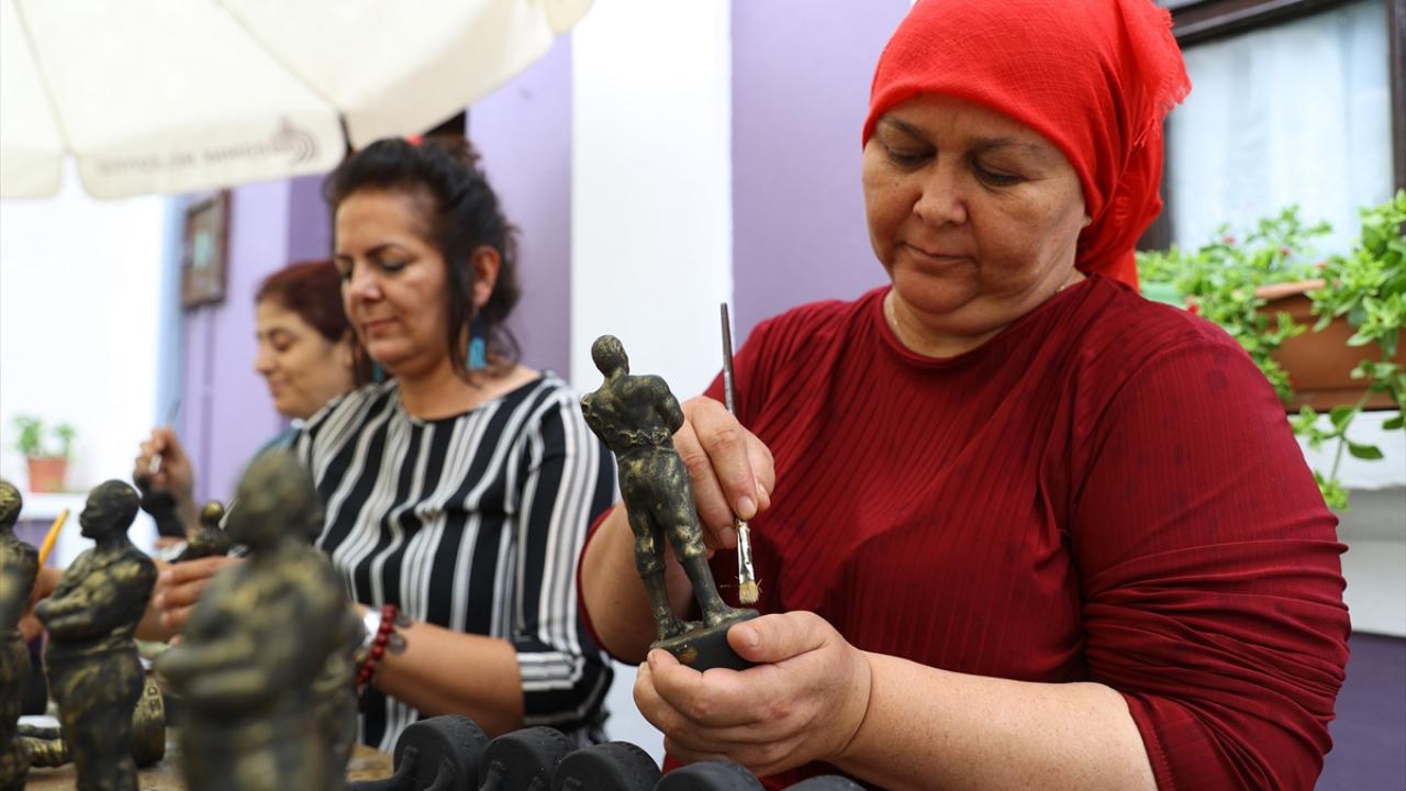 Kel Aliço`nun taş tozundan küçük boy heykellerini üreten kadınlar, Kırkpınar Yağlı Güreşleri`nin gerçekleşeceği Sarayiçi`nde üretimlerini satışa sunacak.